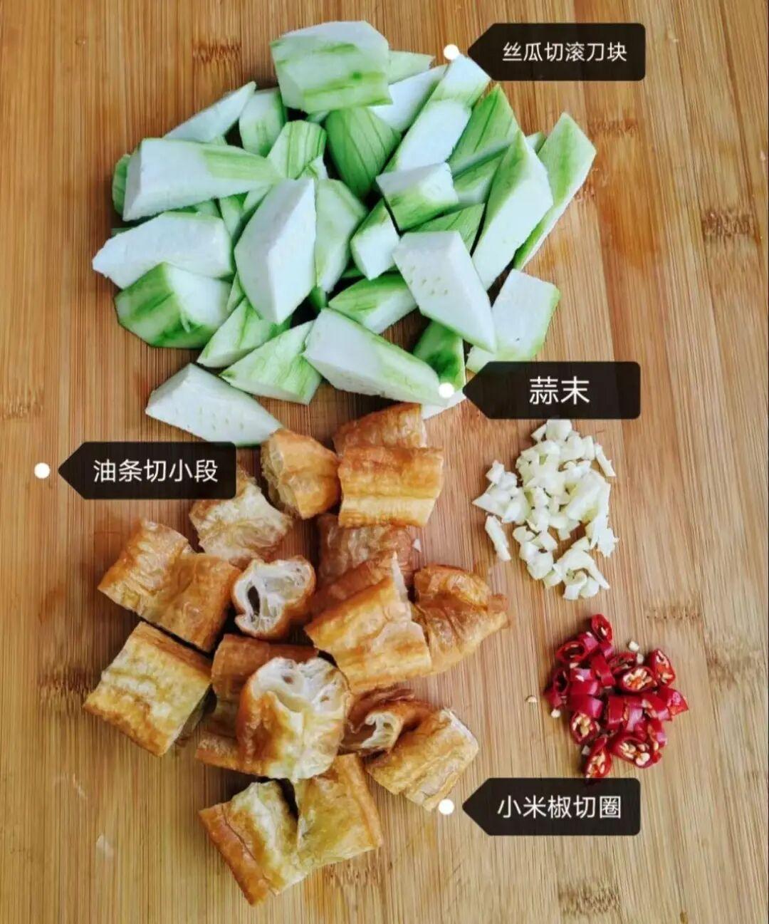 做法很簡單,就是絲瓜滾刀塊,油條切小段,然後正常的炒菜方法去做就行了。