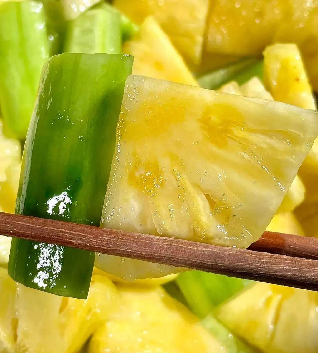 酸酸甜甜的菠蘿撞上清清脆脆的黃瓜,咬下去爆汁又解膩。