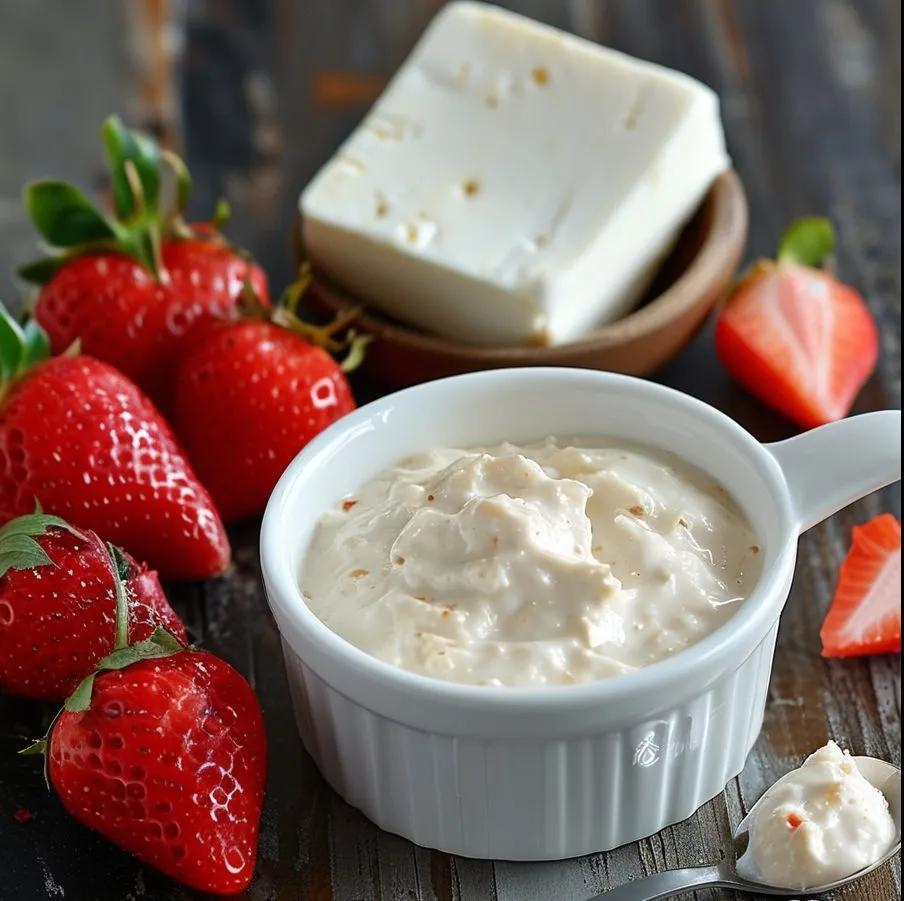 - 攪拌至呈現細膩的糊狀澆到草莓上即可。