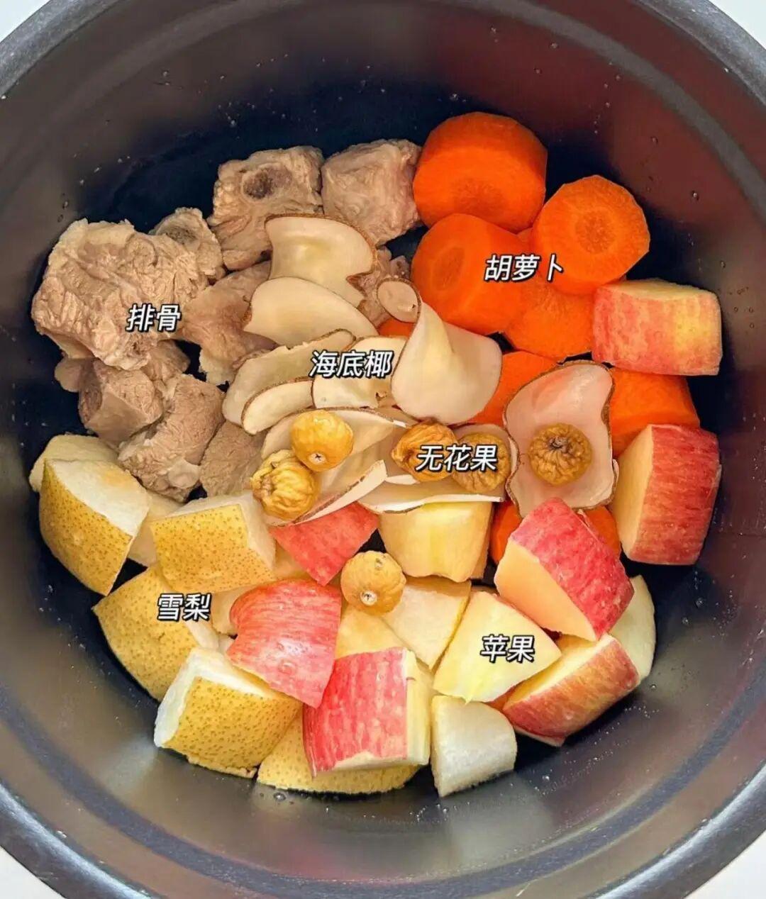 雪梨蘋果湯倒是喝過,印象中這就是給孩子治咳嗽的,誰能想到雪梨蘋果可以加上排骨一起燉。