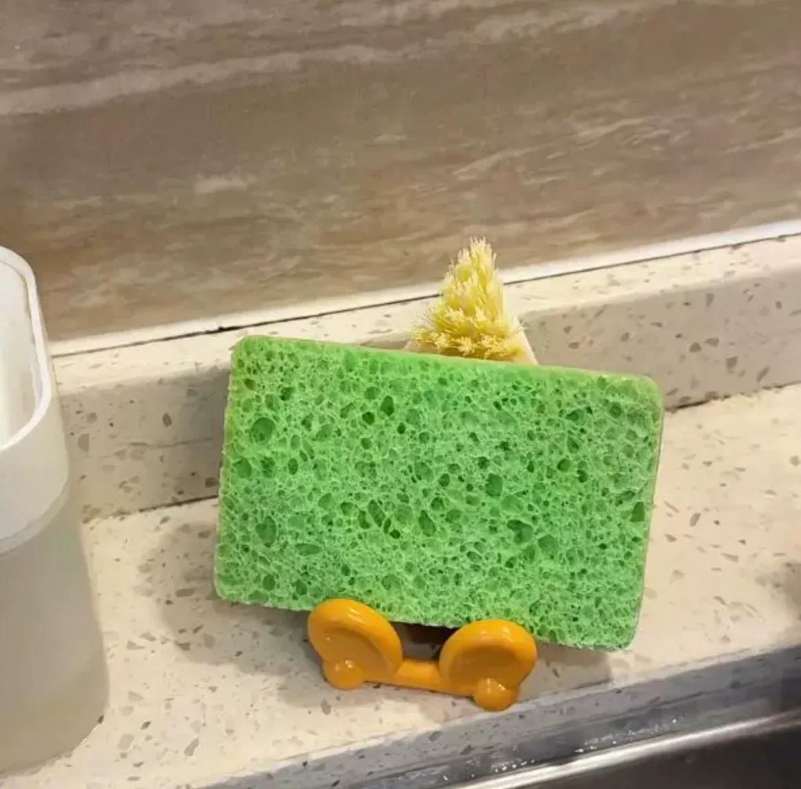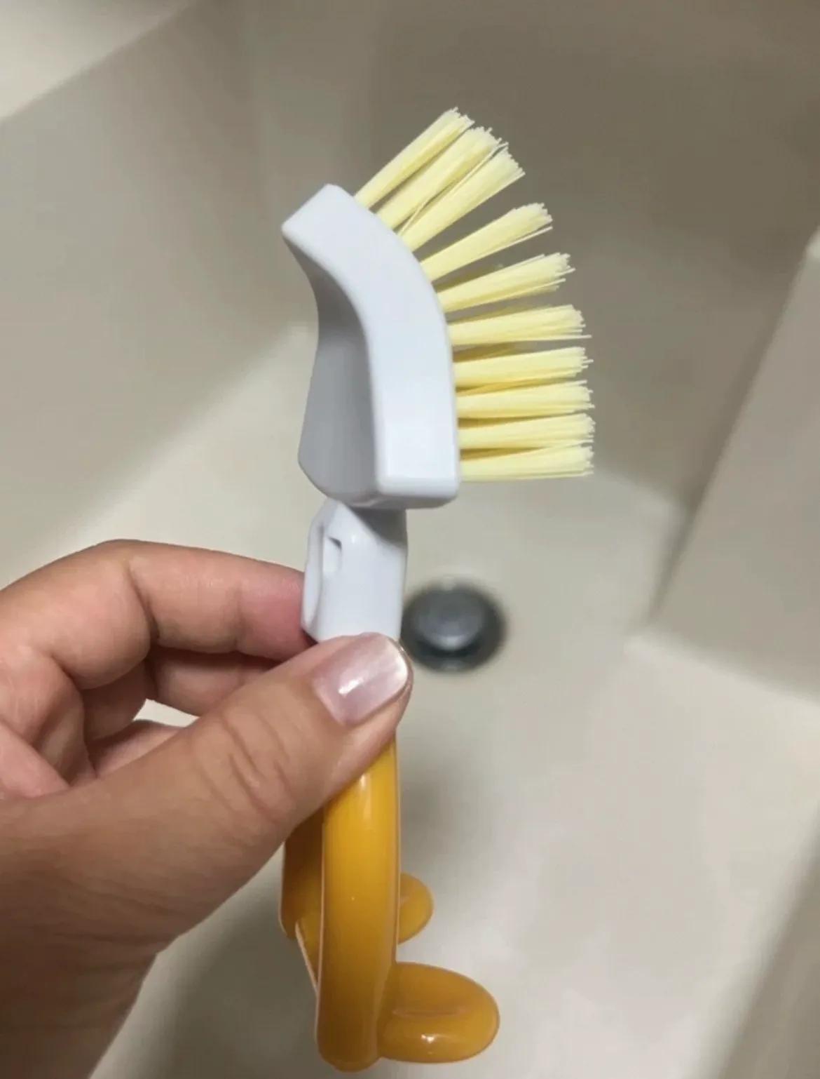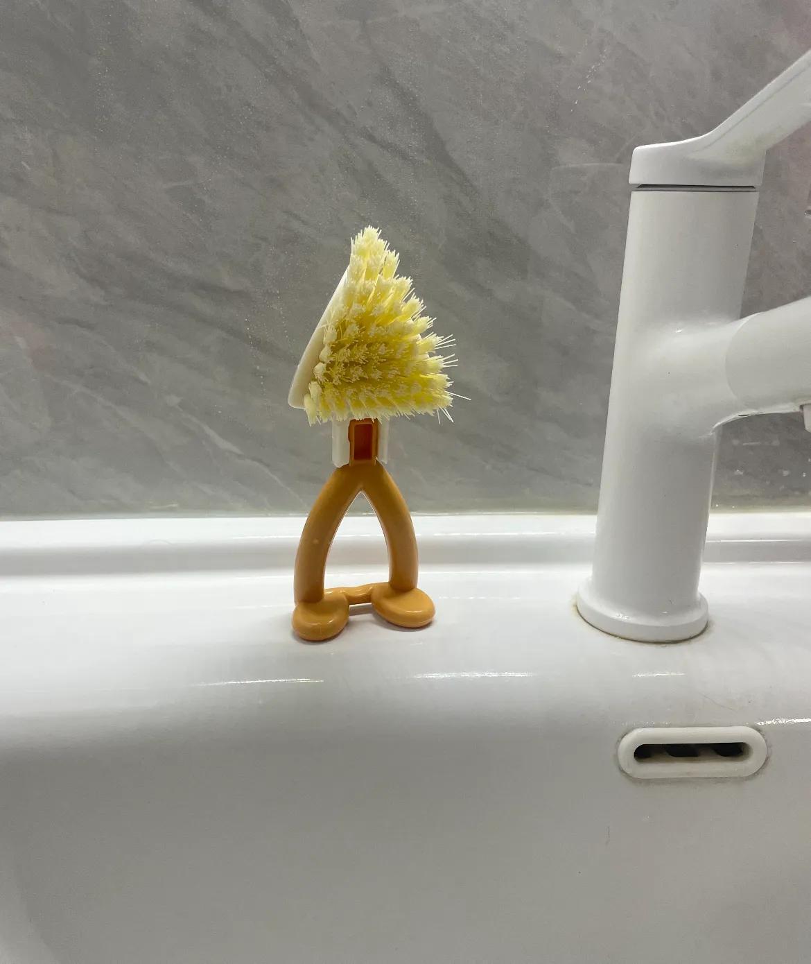 後面又給廚房回購了一把,刷竈頭的污垢、檯面美縫、洗完碗的水槽,都能刷乾淨,而且刷毛不掛油,衝一衝就乾淨,刷完順手一立,放上洗碗棉,檯面清爽不雜亂。