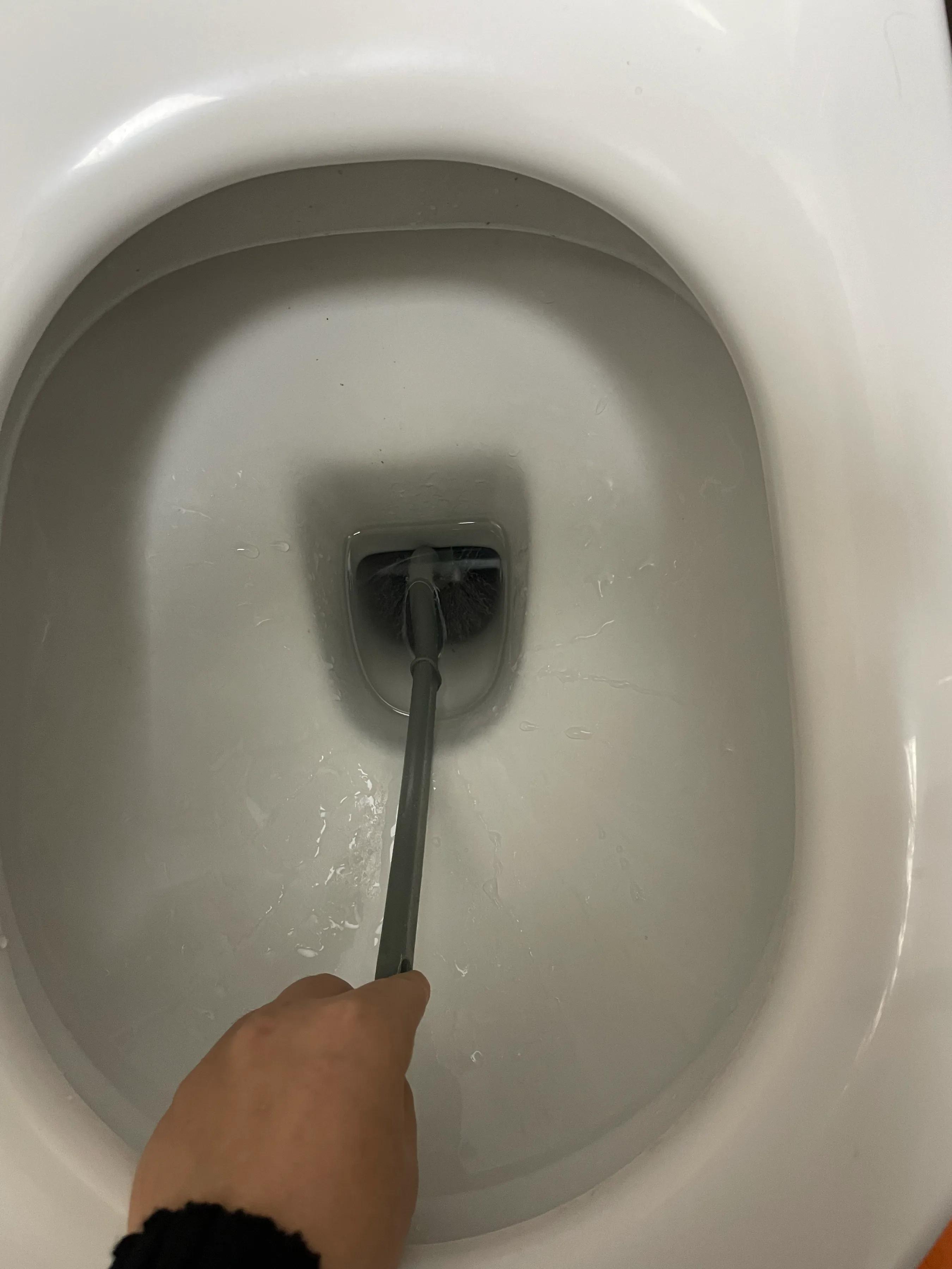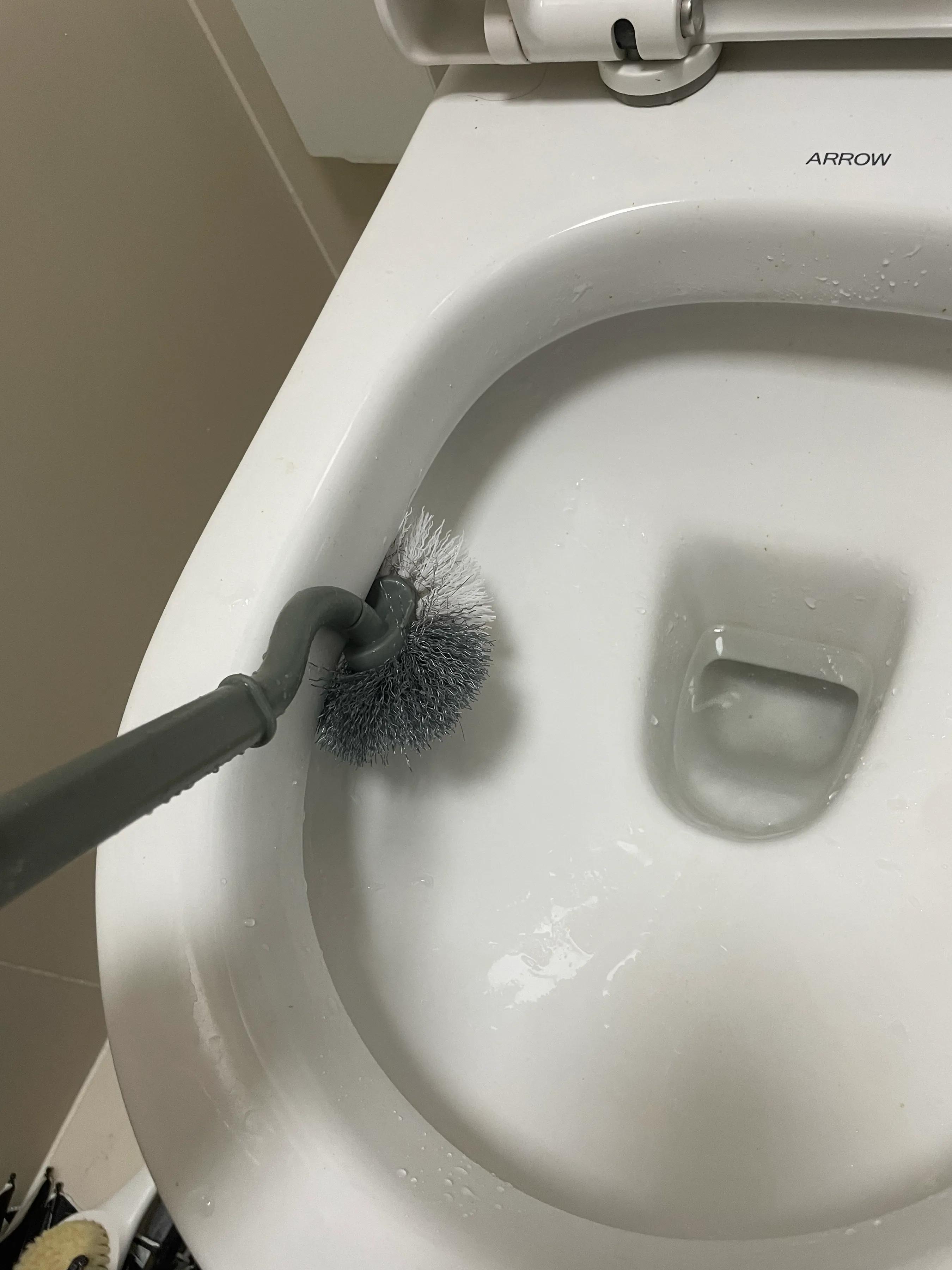 它樣子長得很基礎,刷頭是半球形,但相比老式球形刷頭,半圓形的優點是更貼合馬桶內壁,像馬桶出水口、下水口(坑底)等這些邊邊角角,也能輕鬆get。