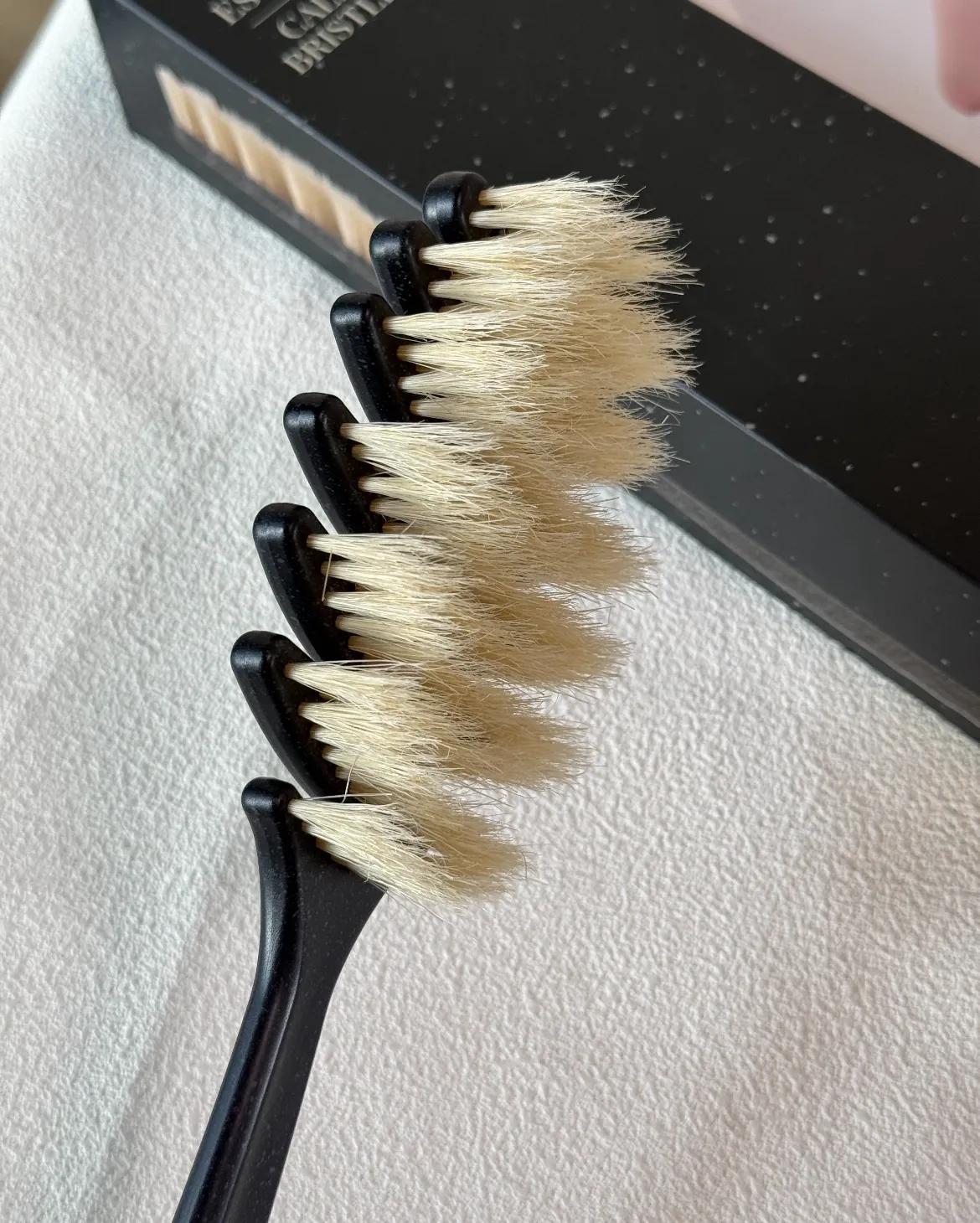 刷毛是天然豬鬃毛,柔軟又去污,清潔力也在線,本來還擔心松塔狀等於毛髮少了一半,用着會不會不如傳統滿毛刷用着帶感?