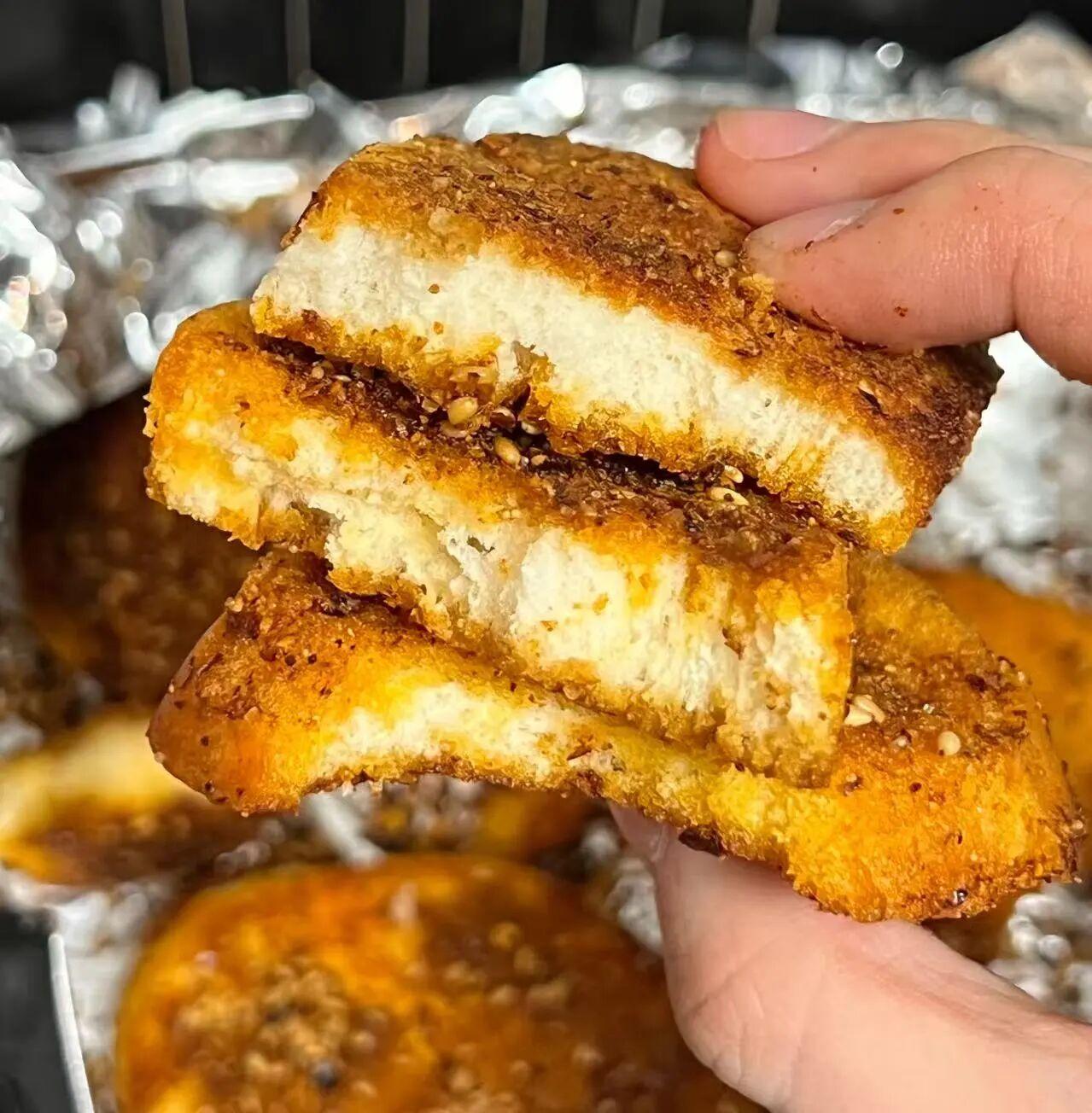 最後上空氣炸鍋,打開鍋蓋的那一刻,香氣撲鼻,用鏟子切一塊,芝士拉絲能拉老長!