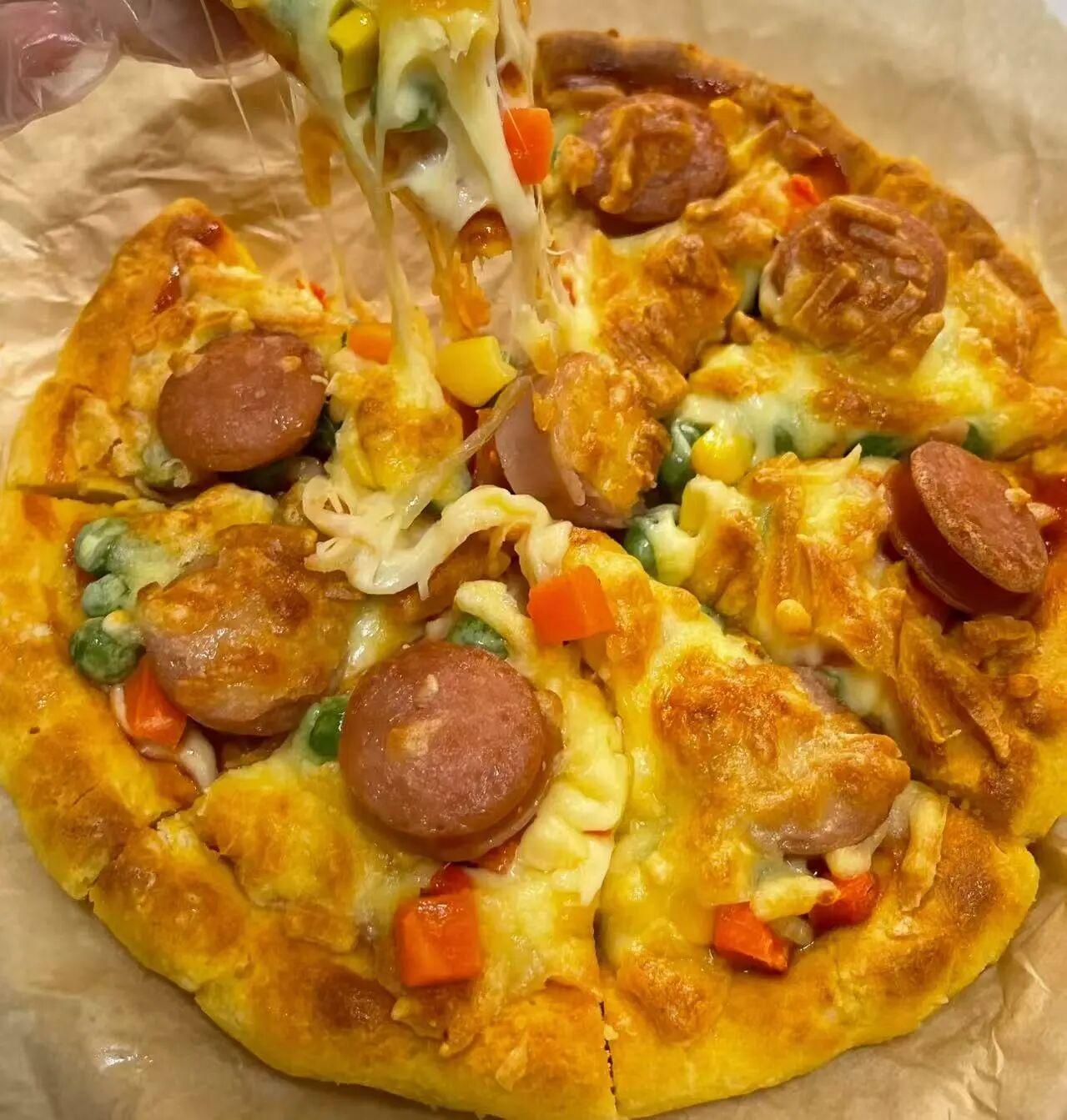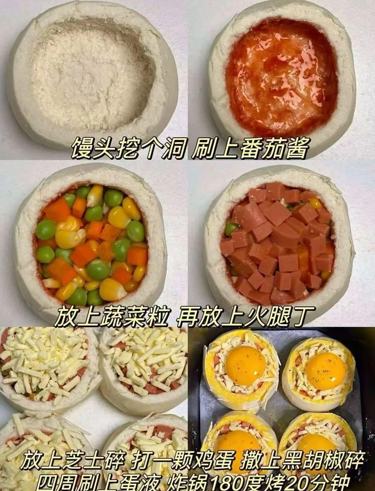 剩饅頭再就業,簡單“搗鼓”一下,家裏沒有烤箱也能做披薩,拉絲效果絕了!