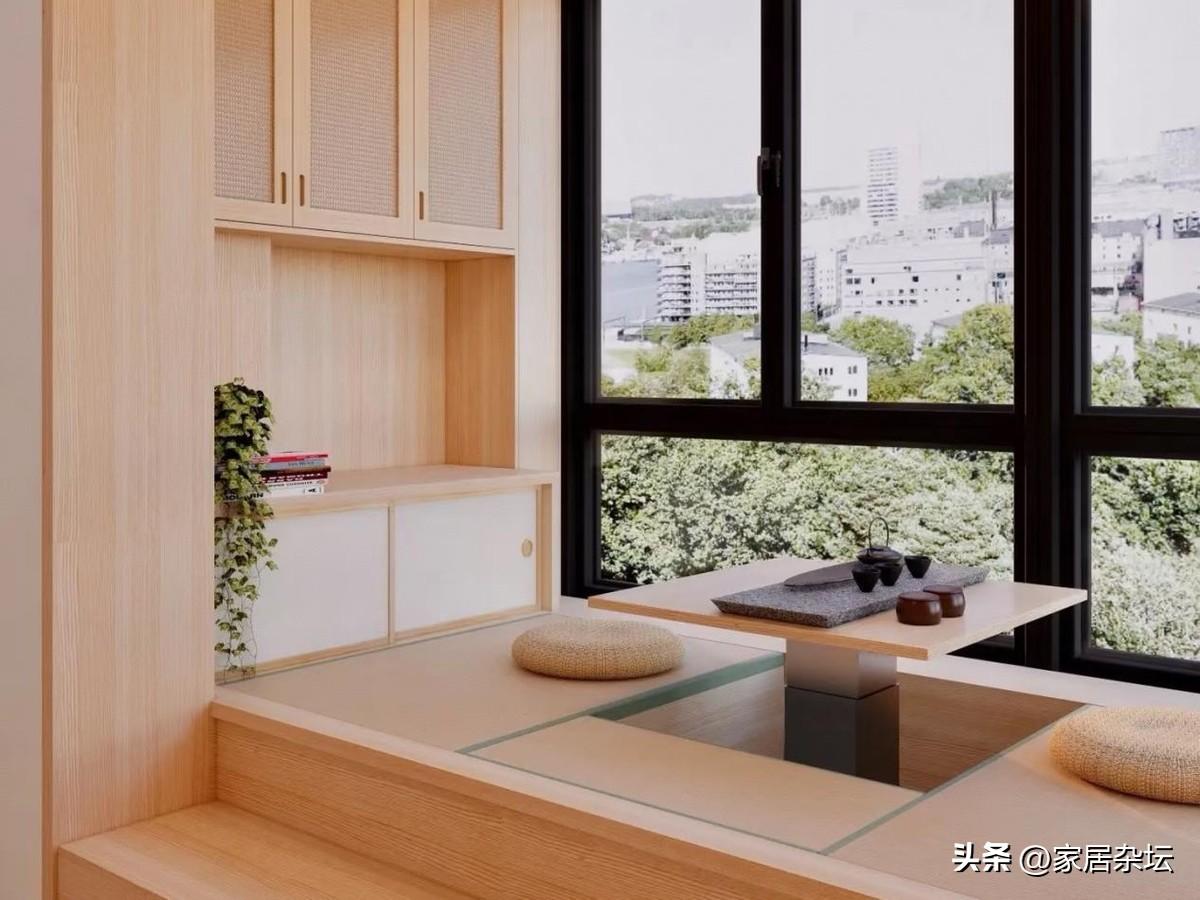 但是,陽臺拔高設計卻改變了這種傳統的做法,將陽臺整體抬高40~50釐米。將這個抬高部位打造爲榻榻米平臺,而下方可以設計爲大容量的儲物空間,頂部保持了正常的採光。