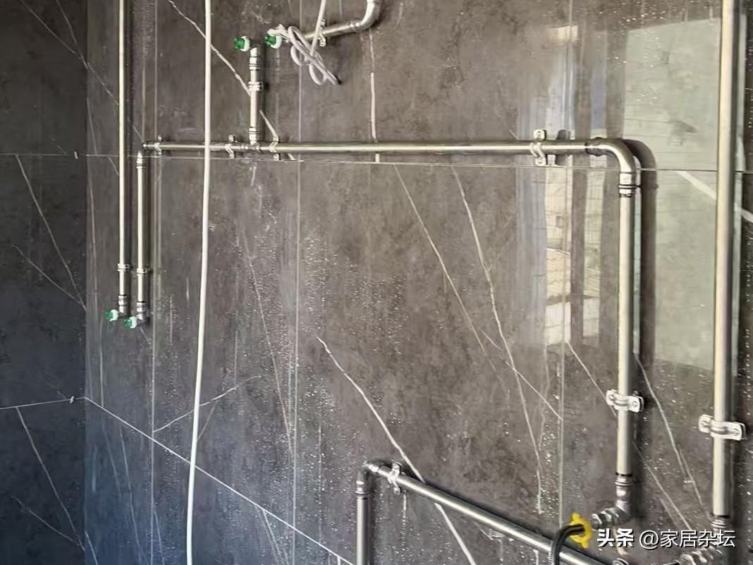 但是,邪修裝修卻不刻意隱藏衛生間的上下水道,而是採取了工業風設計。將銅管,不鏽鋼管,PPR管,pvc管,直接暴露在外面,再搭配上覆古風的閥門和工業風的燈具,形成一種獨特的裝修風格。