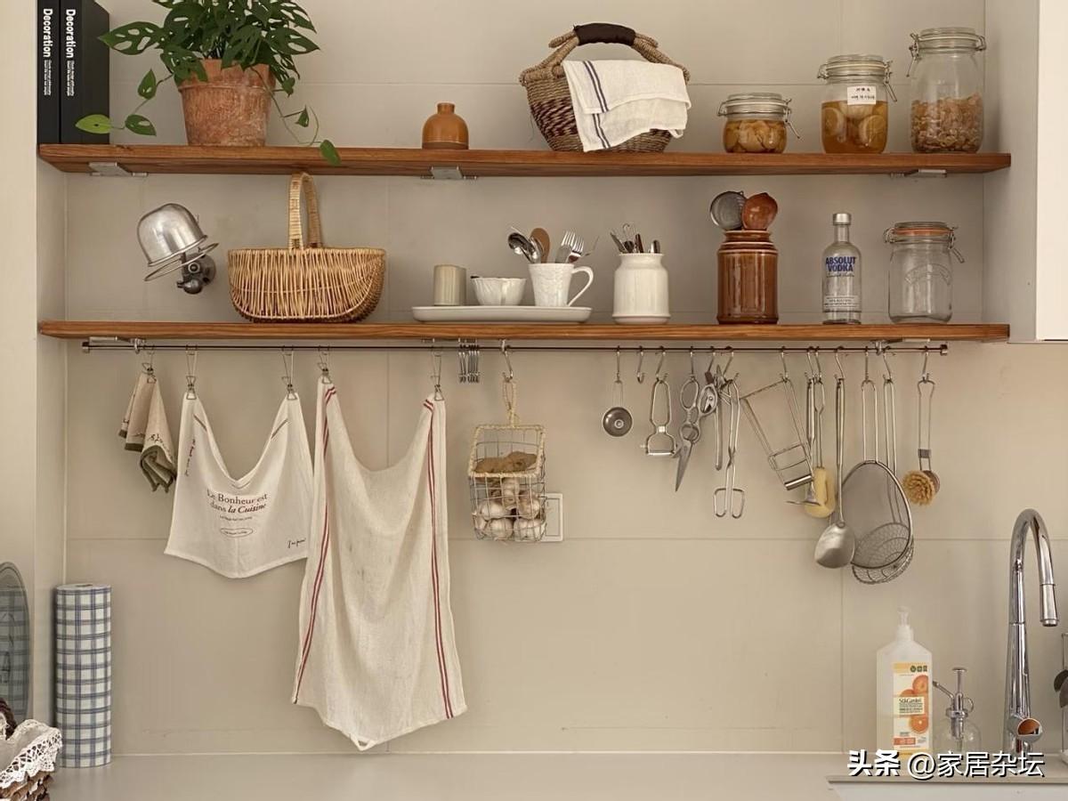 通常是通過牆面掛鉤。磁吸牆面等垂直收納來實現廚房的物品收納。