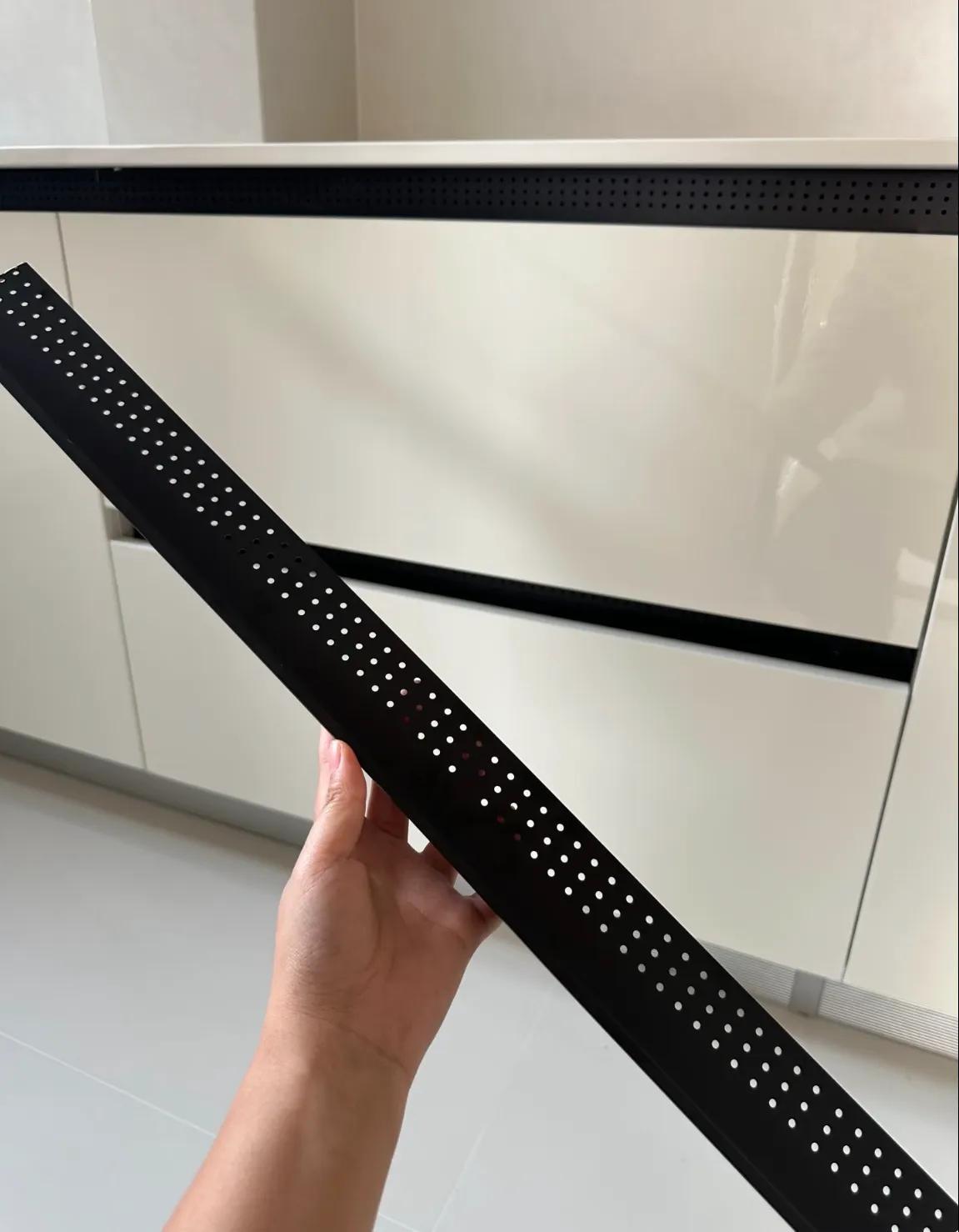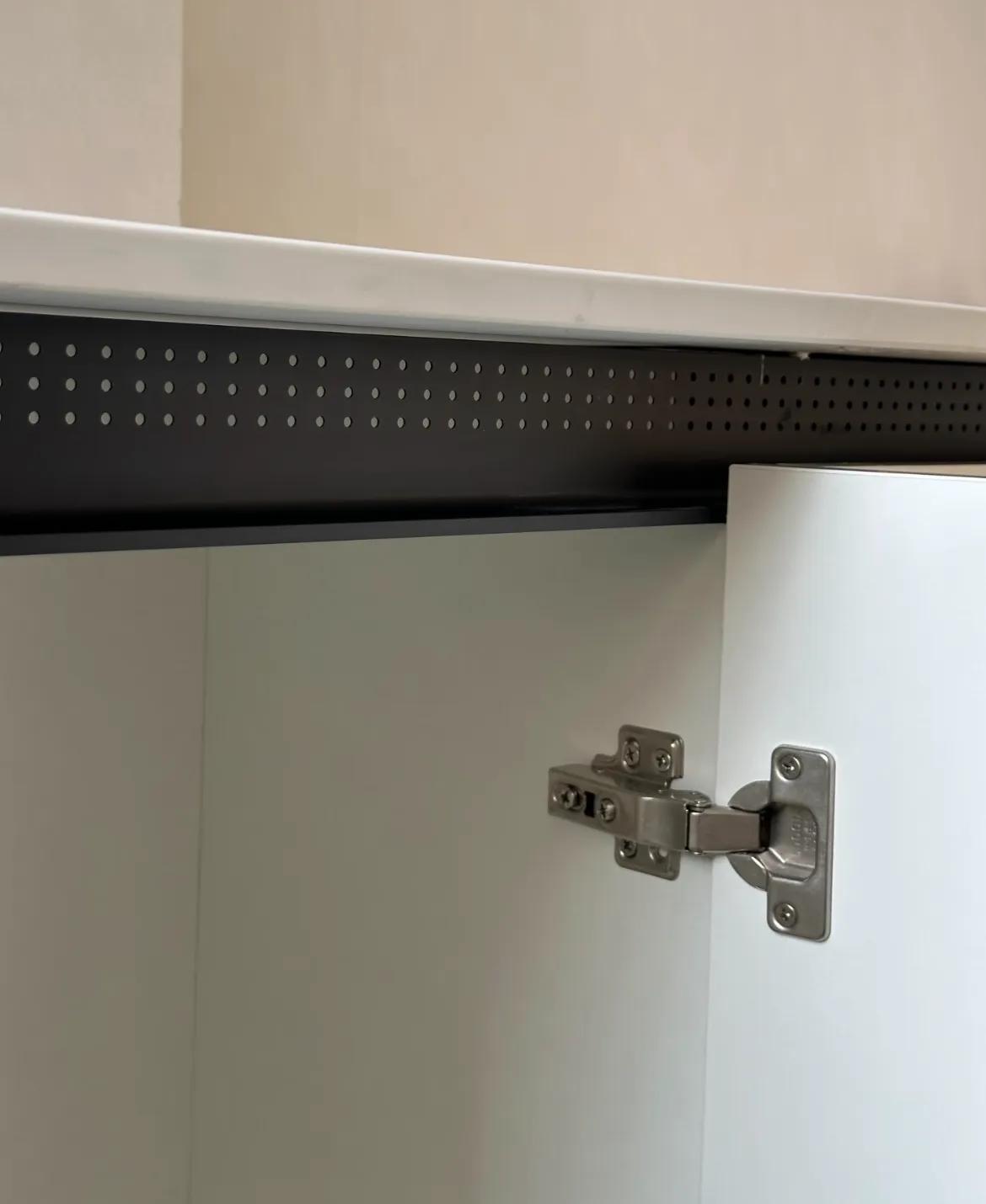- 透氣條款:是把原本的免拉手型材,換成帶透氣孔的,在保證透氣通風的同時,不影響櫥櫃本身的顏值。