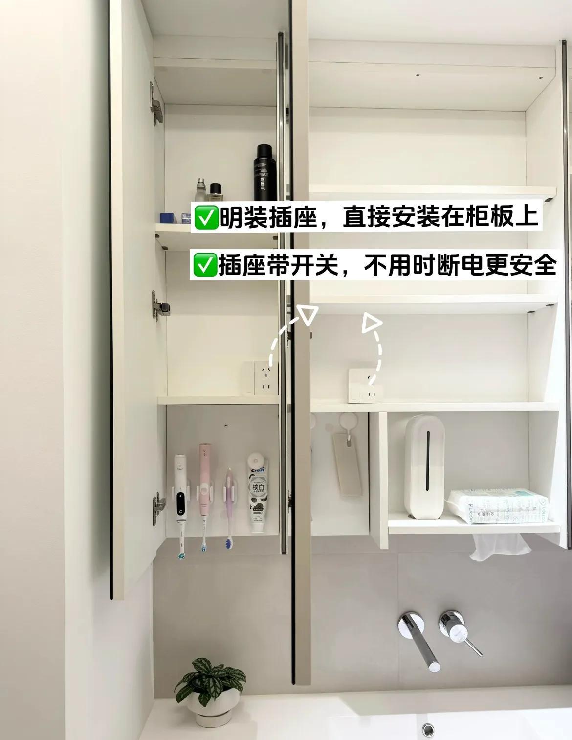 - 鏡櫃背後開洞裝插座:電動牙刷、剃鬚刀就在鏡櫃裏完成充電,不用每天插拔,要多方便有多方便。