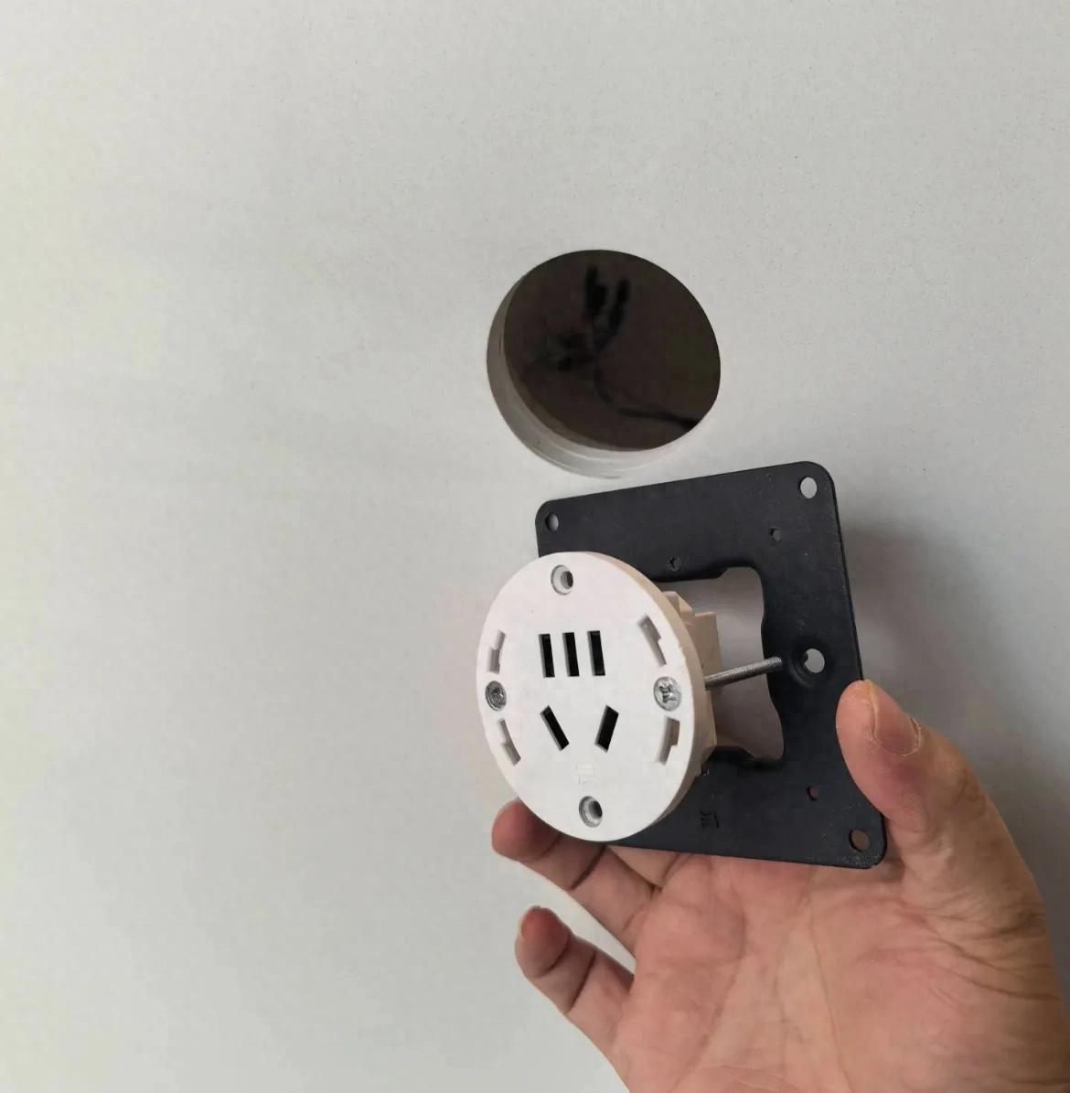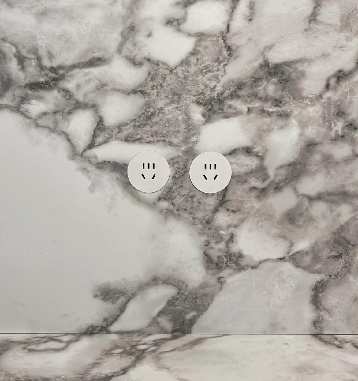 但其實,真的不用,提前買好圓形插座,讓裝櫃子的師傅預留好孔位,後期裝餐邊櫃的時候,就能平嵌安裝圓形插座,顏值一點也不比軌道插座差。