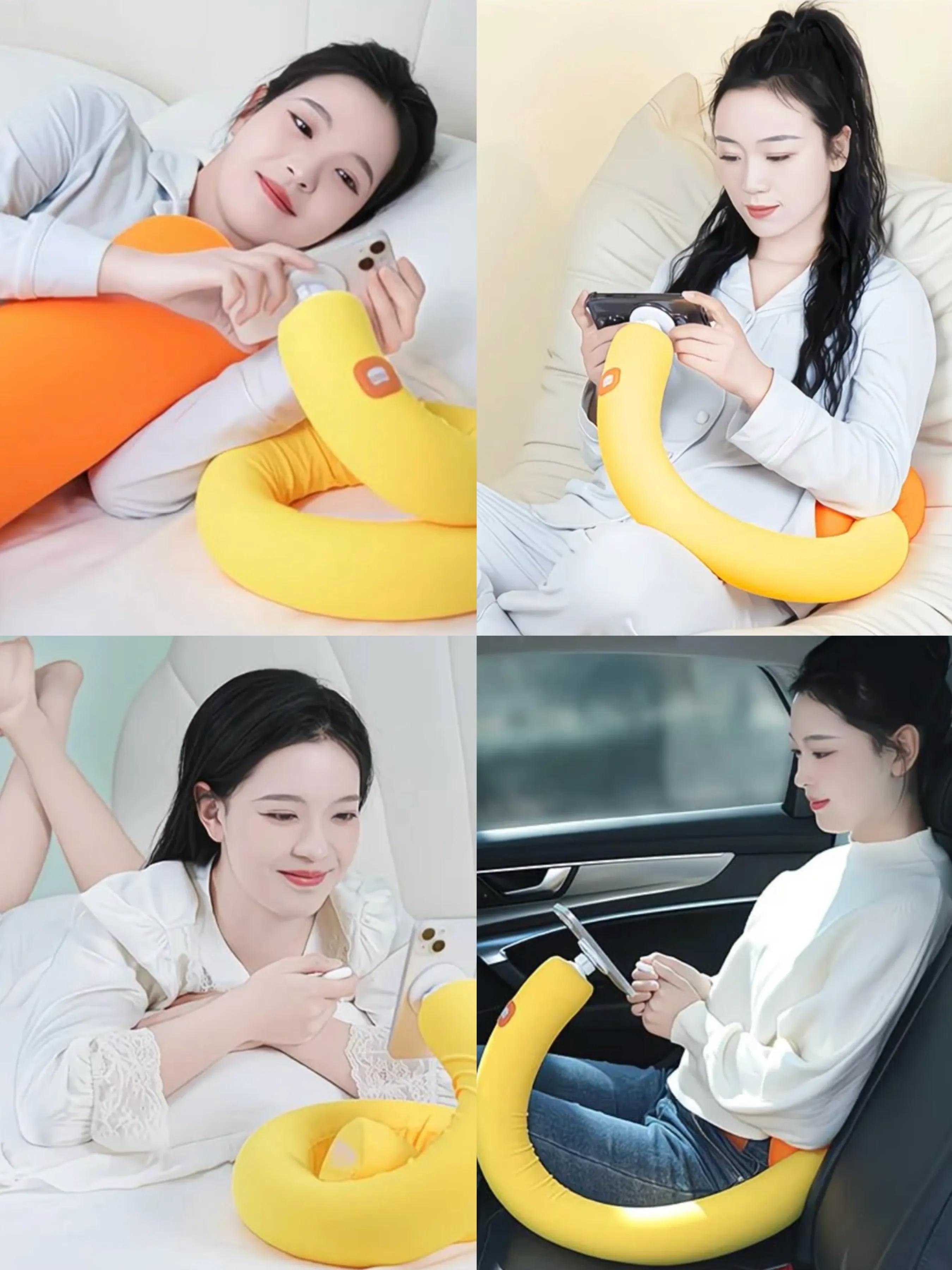 發明這個的人真是爲人類和手機操碎了心,前面支架穩穩搞定手機,後面是個靠枕,可以說,和手機渾然一體了。