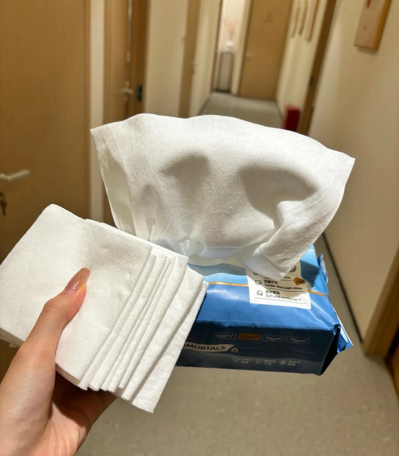 它家棉柔巾是真的厚實,擦完臉還能順便把檯面上的水漬抹乾,尺寸也夠大,再大的臉盤子一張也夠用。