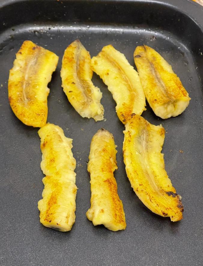 2.電餅鐺裏刷點油,直接把香蕉放上去就可以,記得翻面哦!