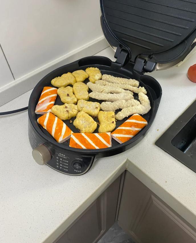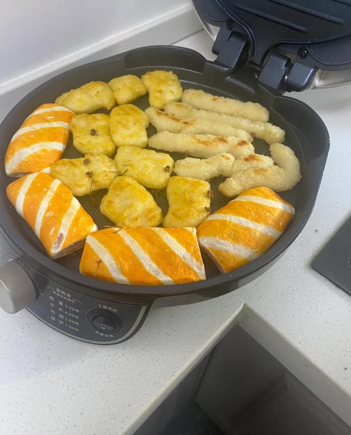 冰箱裏的凍品,比如雞塊、雞柳都可以直接放電餅鐺!
