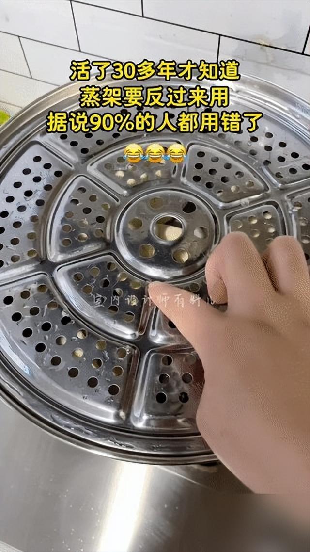 有沒有那種“拍大腿”瞬間?你用了十年的東西,突然發現“原來我一直用錯了”!就像我媽蒸了半輩子包子,每次籠布上都積滿水,包子底軟得能捏出湯,直到我刷到有人說“蒸架要反着放,凹槽朝下導水蒸氣”,試了一次,包子皮立馬乾爽得能彈起來,我媽瞪着眼睛說:“設計師咋不把這祕訣刻在蒸架上?我白吐槽了三十年!”
