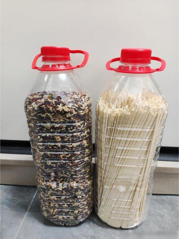 我這種獨居懶癌黨,最頭疼的就是“囤貨後遺症”——掛麪開封后潮得粘成塊,大米袋子拆得撒一地,直到用礦泉水瓶灌掛麪,瓶口剛好漏一根,煮麪時不用翻袋子;拆米袋記住“單線朝自己,從右往左扯”,線“唰”地拉開,比用剪刀還快。現在我櫃子裏的掛麪整整齊齊站在礦泉水瓶裏,連蟑螂都繞着走,朋友來家裏煮麪,盯着瓶子笑:“你這是把掛麪‘裝瓶賣’呢?”我驕傲得像發現了新大陸——原來不是我不會囤貨,是沒get到設計師的“隱藏技能”!