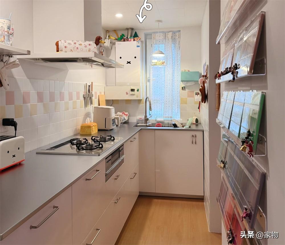 做完櫥櫃後,依舊留有一條狹窄的通道通往室內,且不得不說,這櫥櫃不鏽鋼檯面搭配白色櫃體實在是太有質感了,甚至讓這窄小的空間都顯得沒那麼憋屈了。