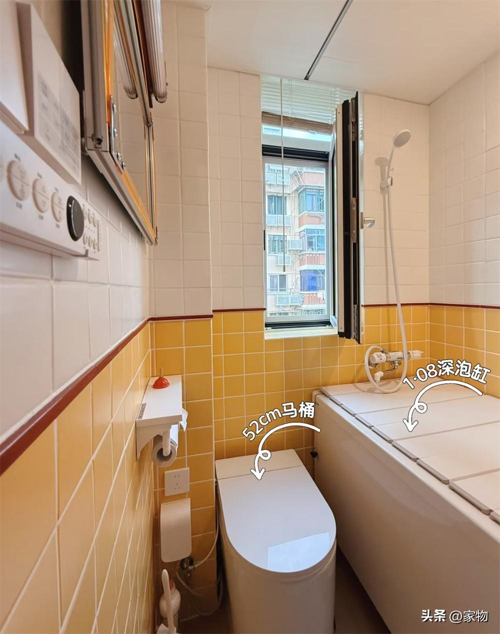 她在馬桶旁邊,甚至還放上了一個深泡浴缸,既可以當作淋浴區,又能偶爾泡個澡放鬆放鬆身體,舒適性拉滿。
