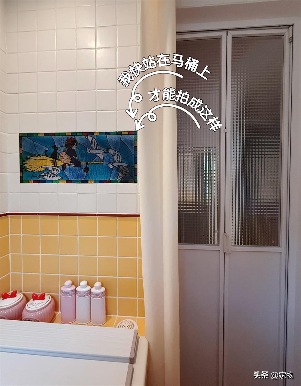 還記得一開始說的玻璃花磚麼?它其實就在浴缸頂部,《魔女宅急便》的圖案也顯得饒有趣味。