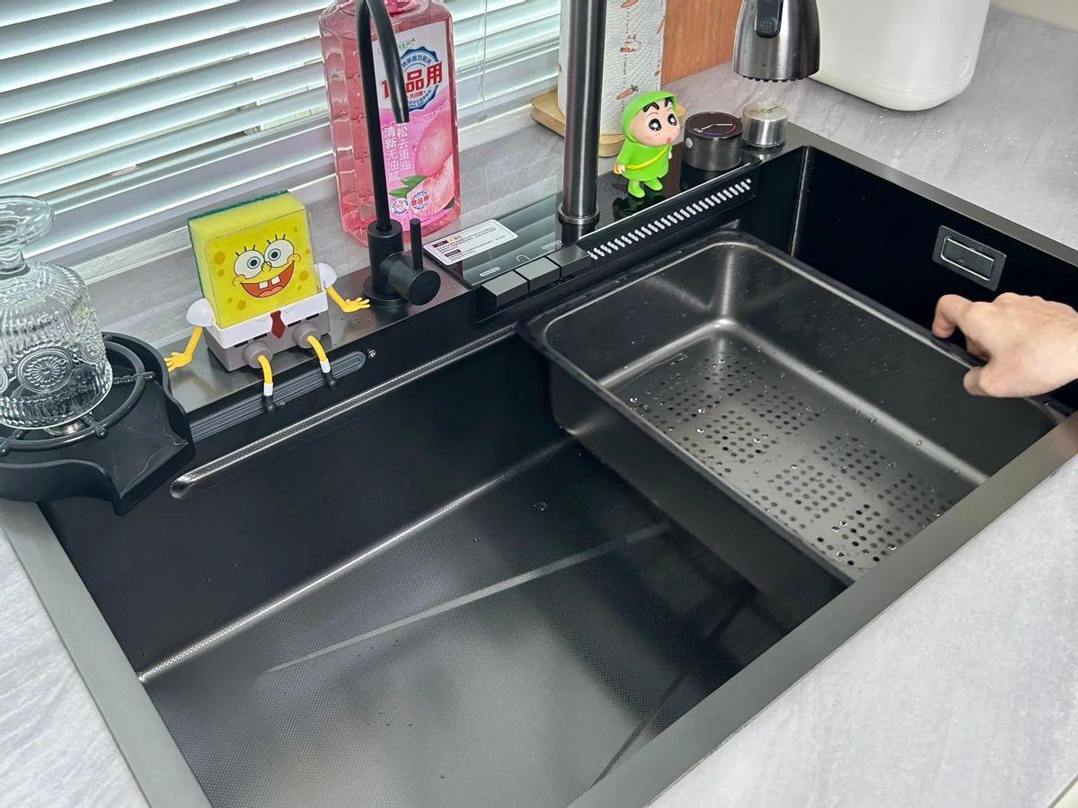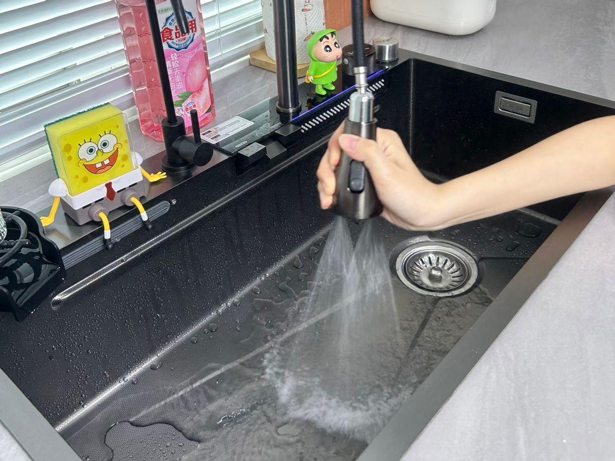 剛開始,我還是有一點心疼,不過看了安裝後的效果,感覺真的很值。入住後我也發現這個大單槽真的很好用,可以輕鬆容納鍋具。抽拉龍頭可以無死角沖洗,水槽內的角落清潔效率,明顯就提升了很多。