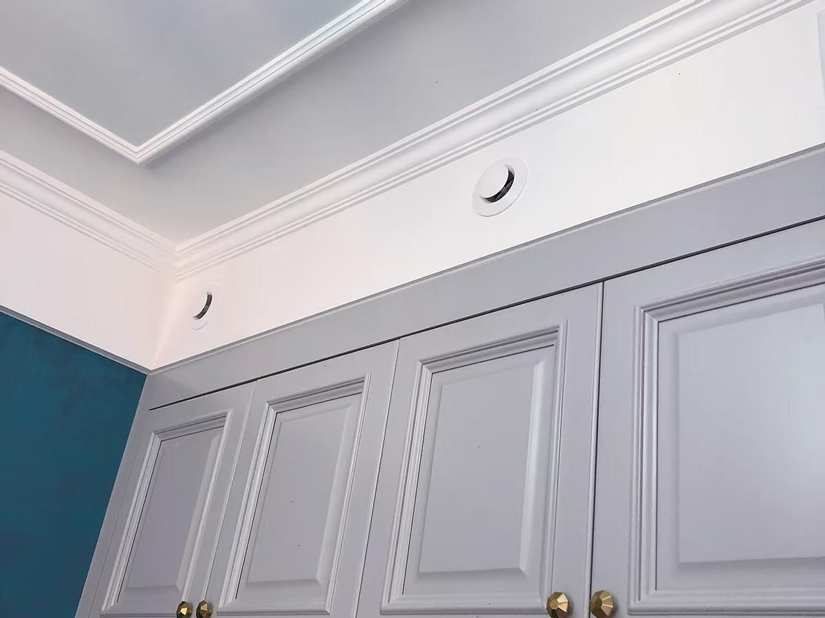 在裝修時,吊頂內安裝了中央新風,還配備了三級濾網。每個房間都有出風口和迴風口,室內形成了完整的空氣循環。