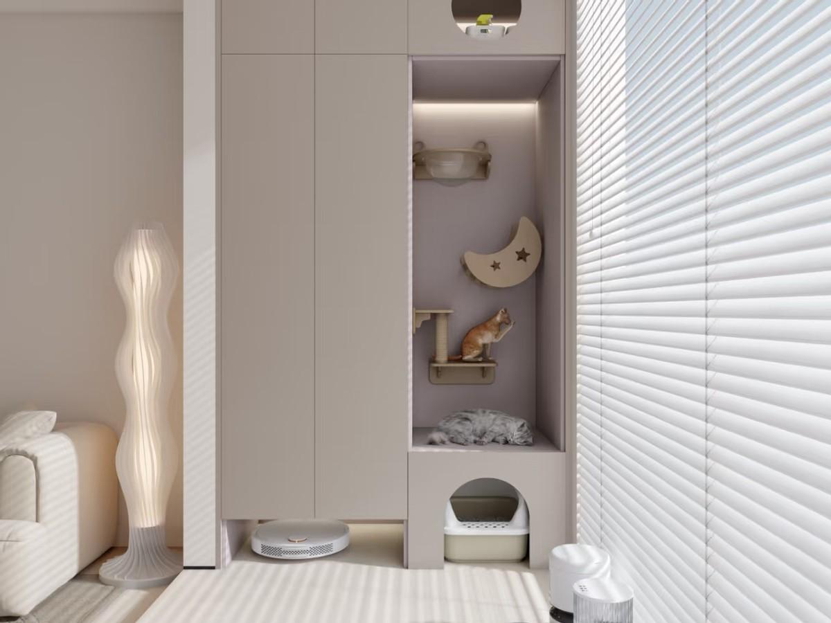 我家這次裝修,家裏的幾乎所有傢俱都採取了懸空設計,目的是讓掃地機器人可以自由穿過。