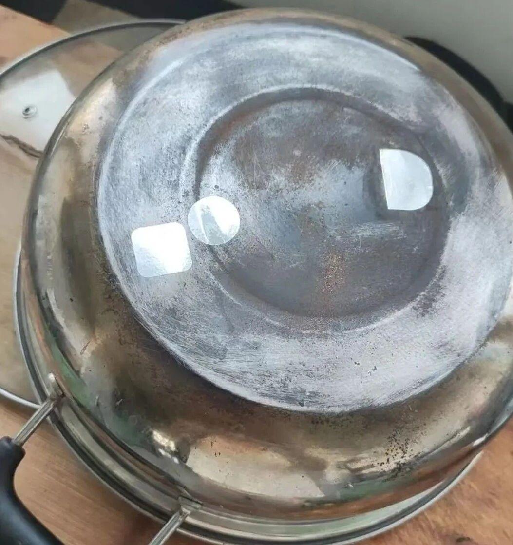 後來我在拼多多上找到這種銀色的“補鍋貼”,看上去就是一張帶膠的鋁箔片,心裏還真有點打鼓:這薄薄一片,能行嗎?