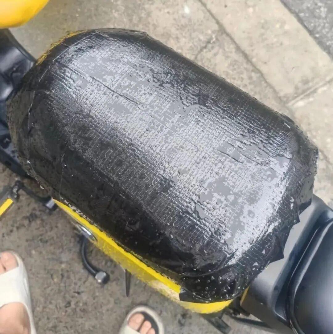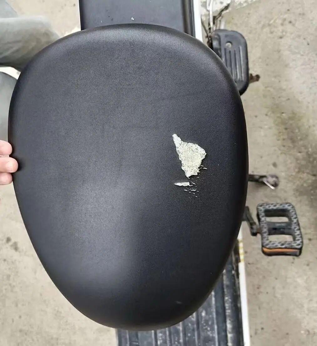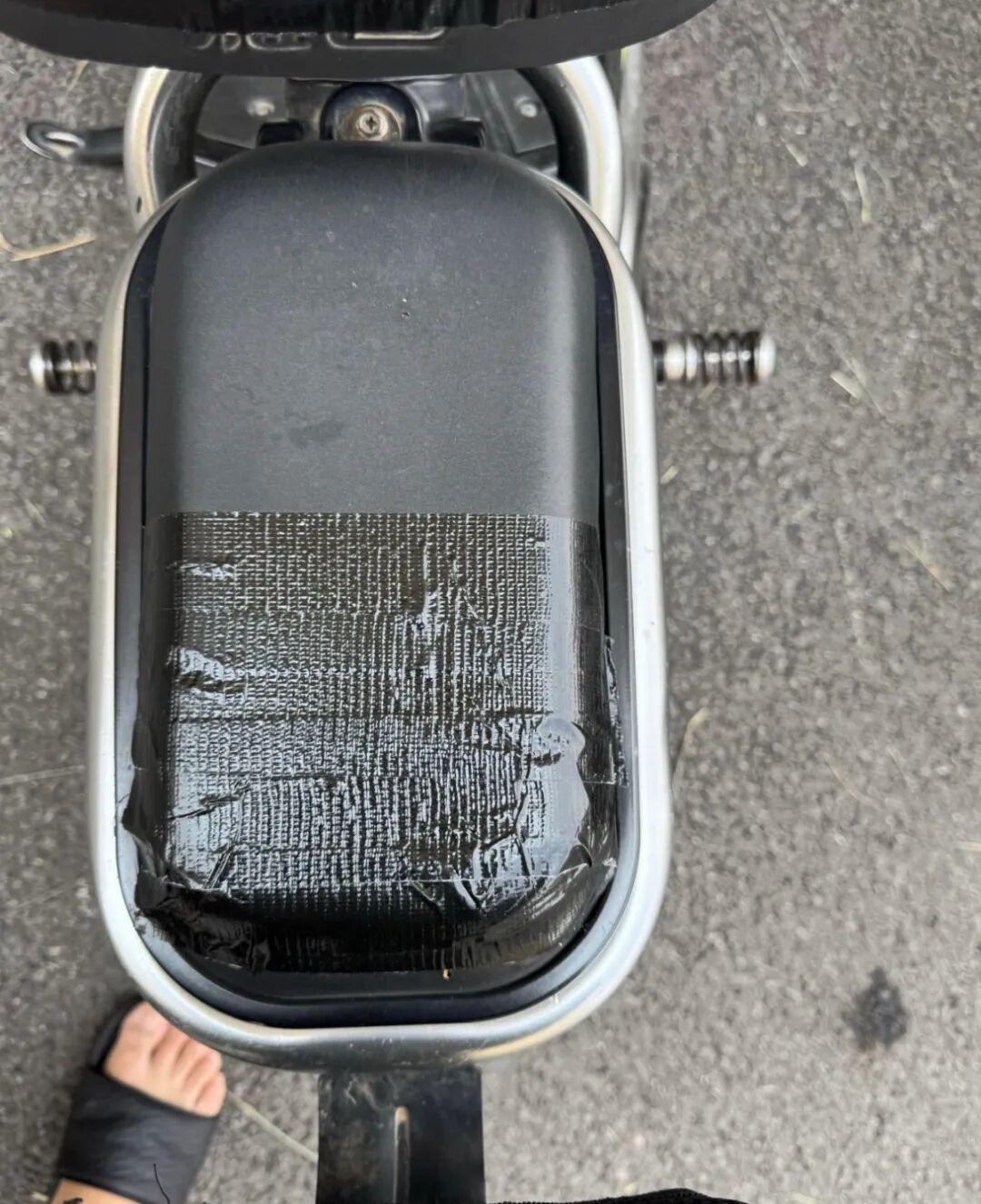 電動車停在外面不知道是不是野貓抓的,還是人爲破壞的破個大洞。