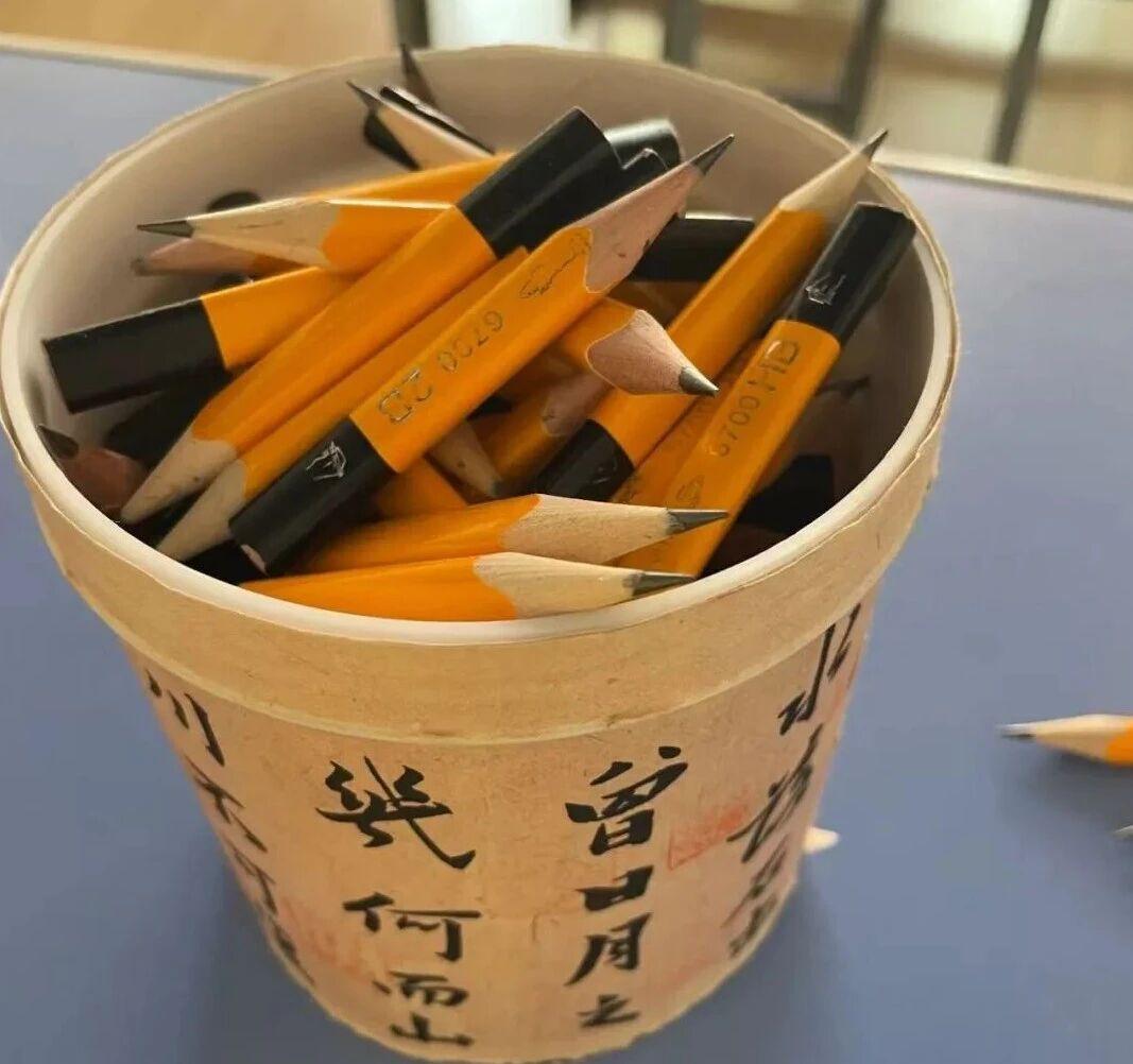 孩子上了硬筆書法班後,用短的鉛筆頭攢了滿滿一盒。