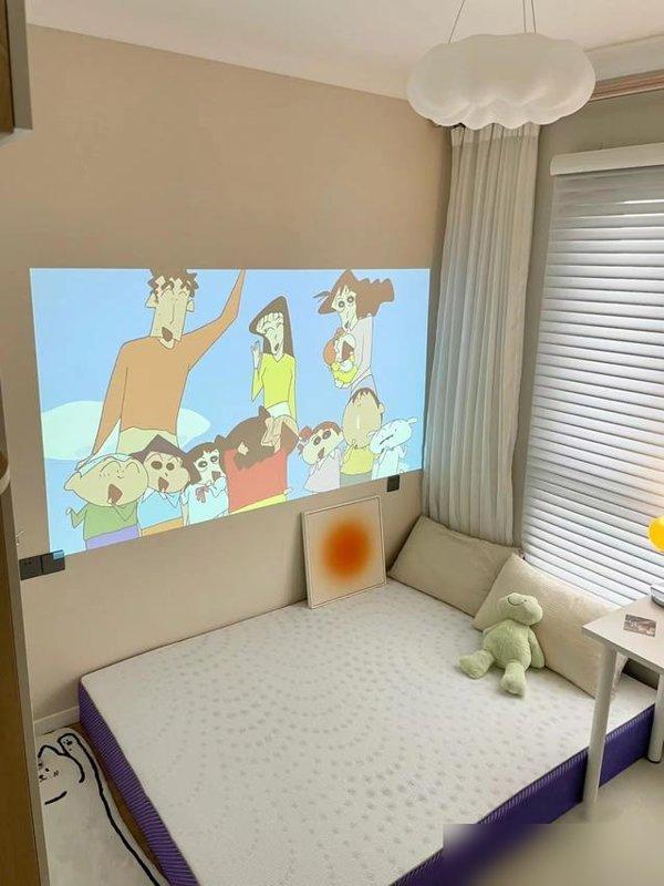 主臥、次臥、書房的設計更是“把錢花在刀刃上”:主臥沒吊頂只走石膏線,牀頭刷奶咖色乳膠漆,搭配綠色牀品和雲朵燈,溫馨得像裹了層棉花;懸空梳妝檯代替牀頭櫃,省出的空間能放瑜伽墊;次臥9平沒做全封閉衣櫃,留兩個空位展示,瞬間告別“小房間壓抑感”;書房的轉角書桌能兩個人一起辦公,牆上刷奶咖色當投影背景,累了躺牀墊上看電影——這纔是年輕人的生活啊,既要能賺錢工作,也要能躺平放鬆!