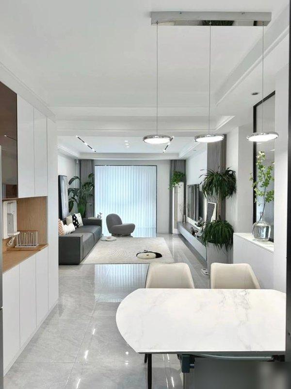 誰裝修沒踩過“花大錢做複雜造型最後顯亂”的坑?這家人倒好,客餐廳一體+陽臺打通,不用敲牆砸地,就靠格局改動把空間拉得賊通透;吊頂只做了雙眼皮,搭配無主燈,比那些“層層疊疊歐式吊頂”省了一半錢,還把層高顯高了10公分——是不是很多人怕沒設計師裝出“出租屋感”?人家用“通鋪灰色瓷磚+白色乳膠漆+灰色軟裝”的配色,簡單到極致卻高級到骨子裏,完全沒有那種“廉價感”。