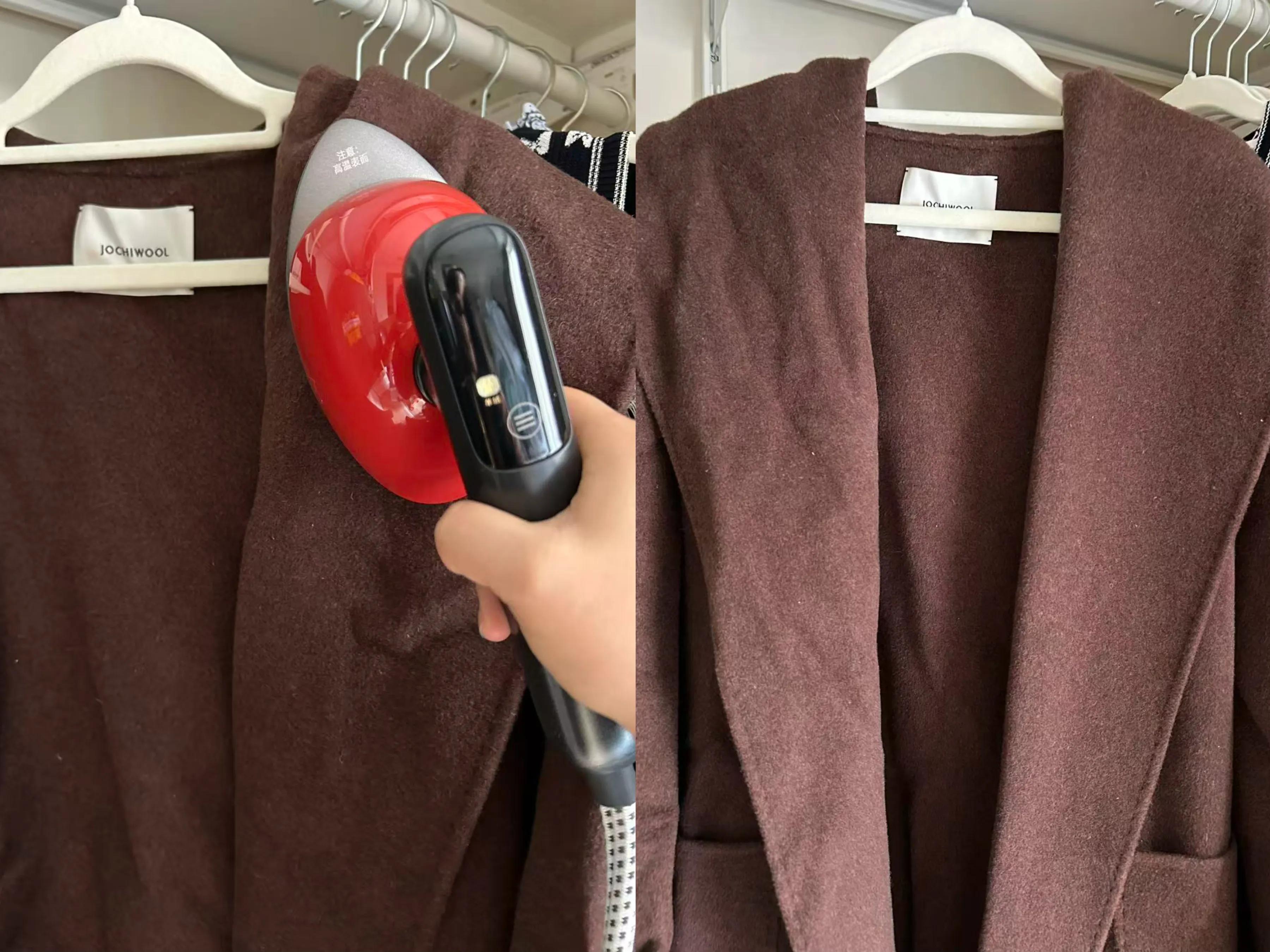 如果你有定型平燙的需求,也可以用它,比如上面羊毛大衣,在給衣領定型時,熨燙紐扣位時,我就用了平燙,美人尖YYDS。