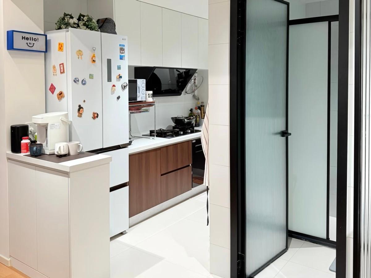 事實上,廚房對着衛生間如果巧妙的設計動線,可以打造出意想不到的高效動線。