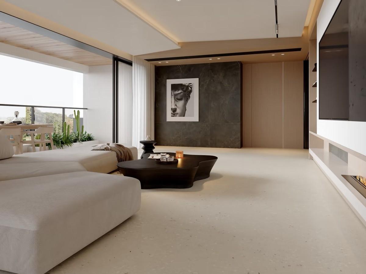 水磨石地面可以選擇現代的配色和骨料比例的水磨石。這種水磨石可以做出整體無縫地面,也可以做成局部的裝飾。表面進行精細打磨和密封處理以後,效果是真的很高級。