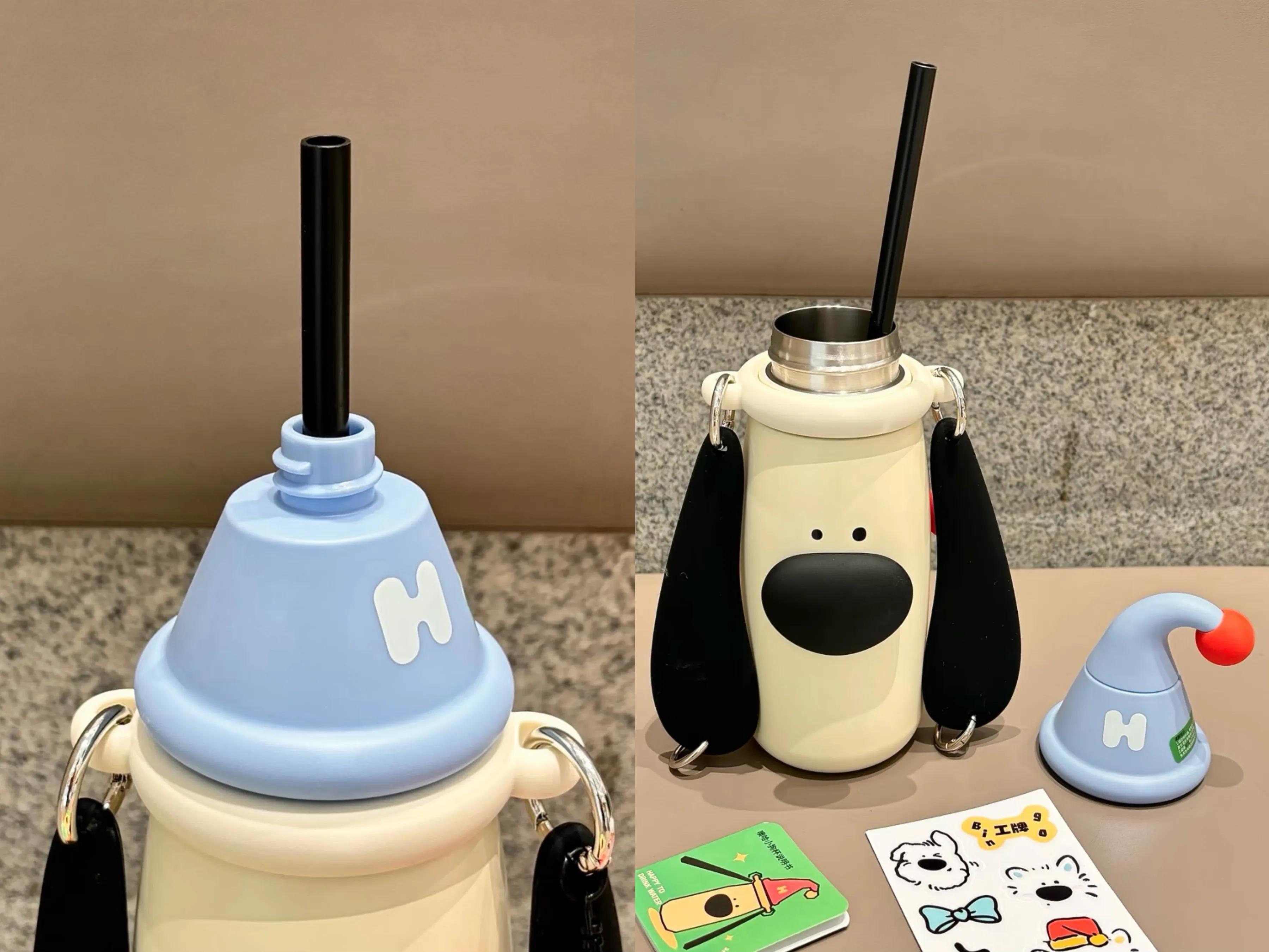 狗帽子:是帽子、是蓋子,還是一個可懸掛、非常方便手提的提手,還順帶實現了“一杯3飲”的功能。