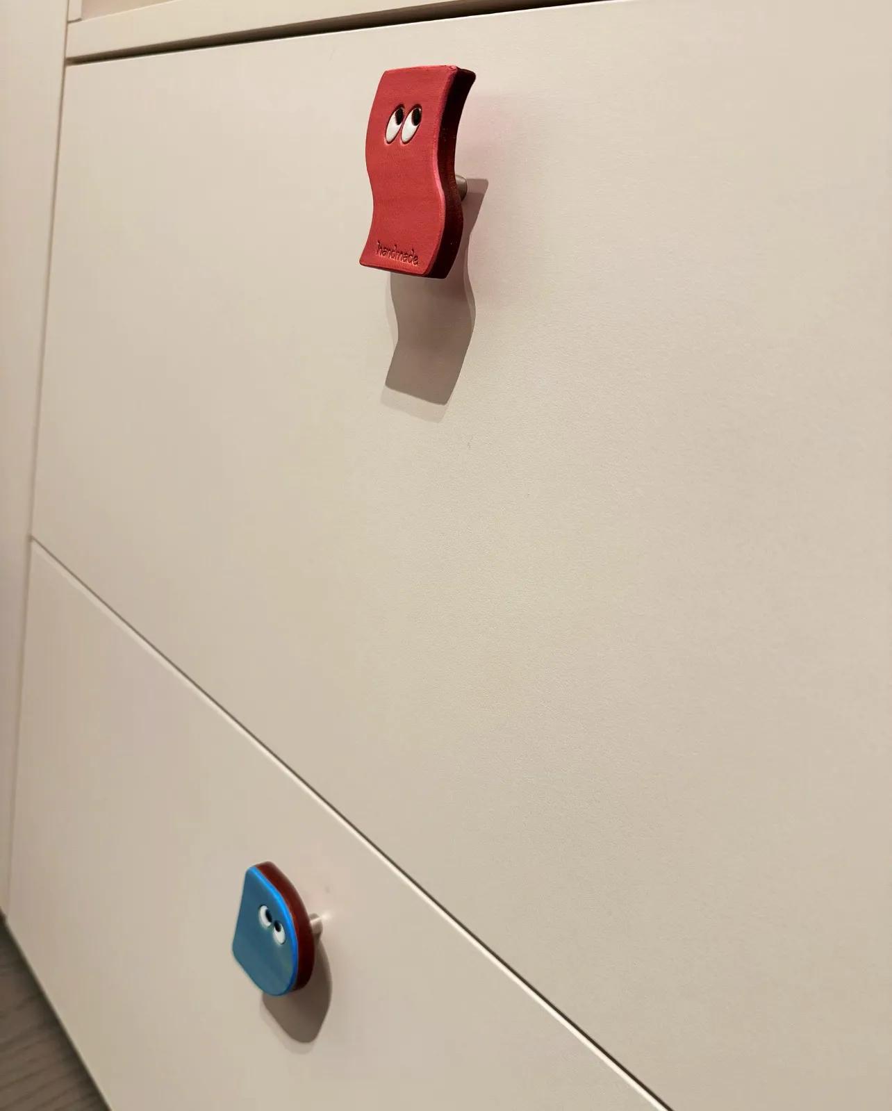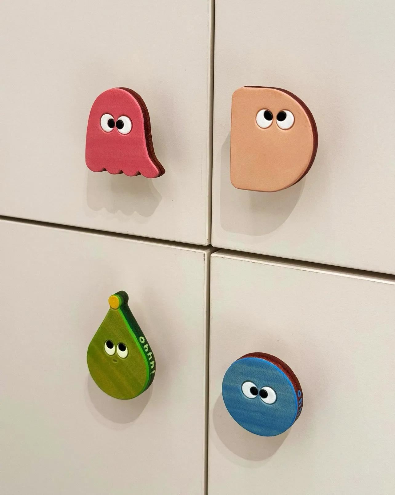 其次是在設計上,用了T型的結構,造型圖案跟櫃門是有間隙的,手指是可以塞進去,真正讓拉手,可以拉,更省力,而不是像其他那種可愛拉手,其實是捏着拉手開門的,更費勁。