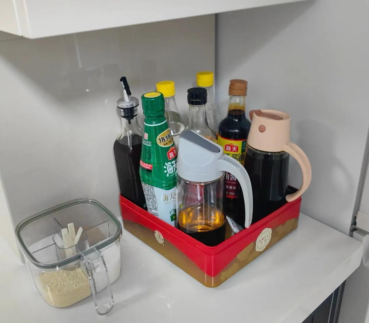 還在爲廚房瓶瓶罐罐的擺放煩惱嗎?月餅盒解決你的問題。