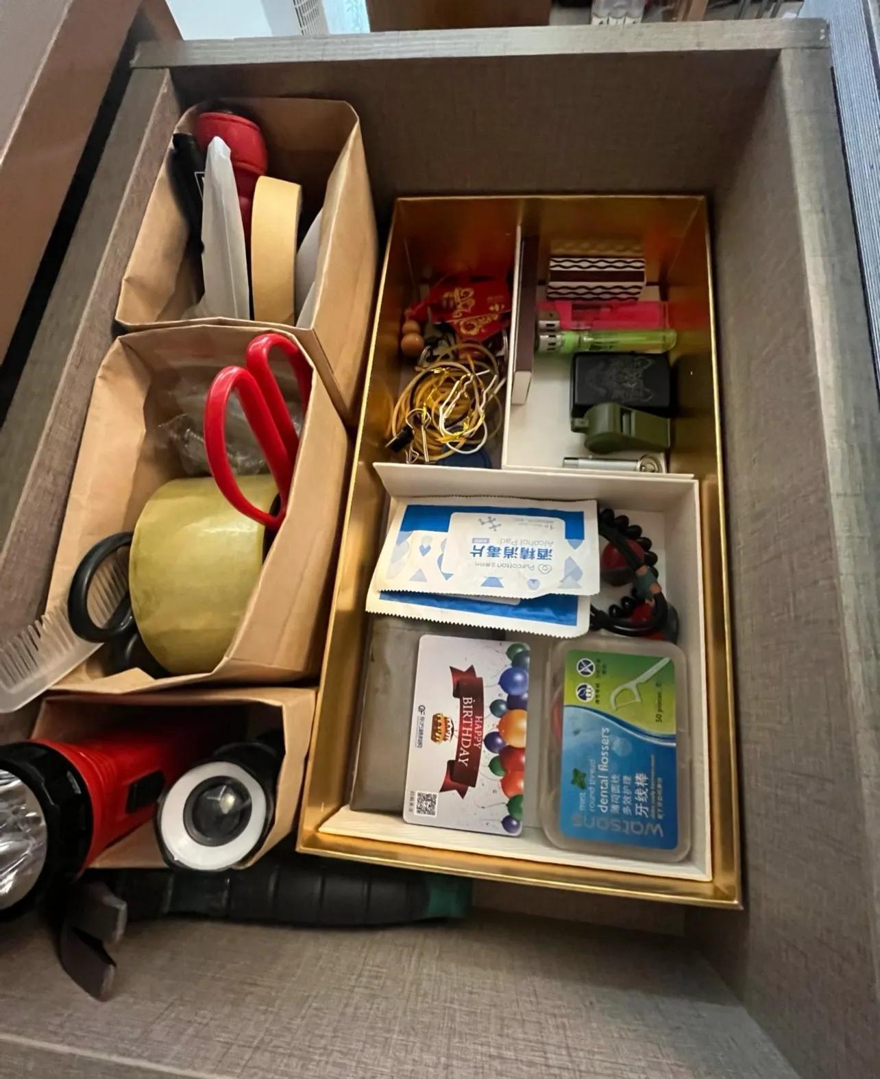 如果覺得盒子太大,堆在一起太過雜亂,可以將它分隔成小空間。