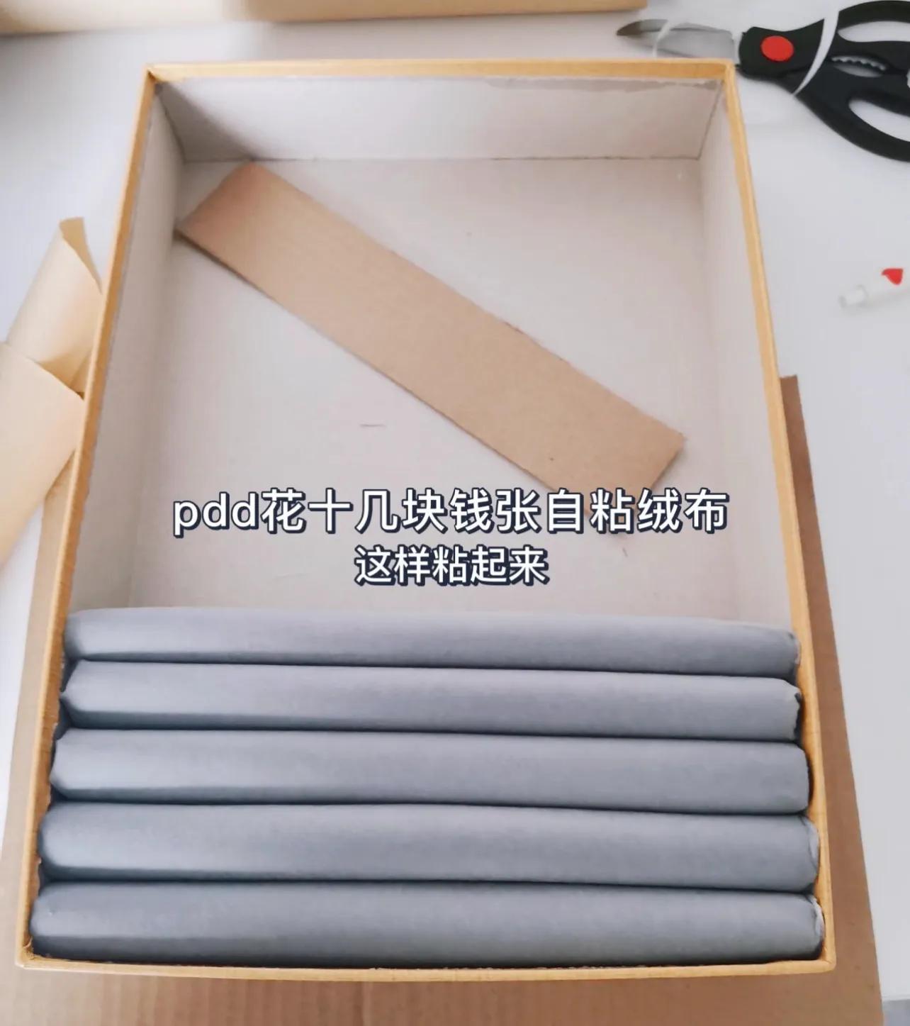 材料準備:月餅盒、薄泡沫紙、某夕夕十幾一塊的絨布、雙面膠、回形針。