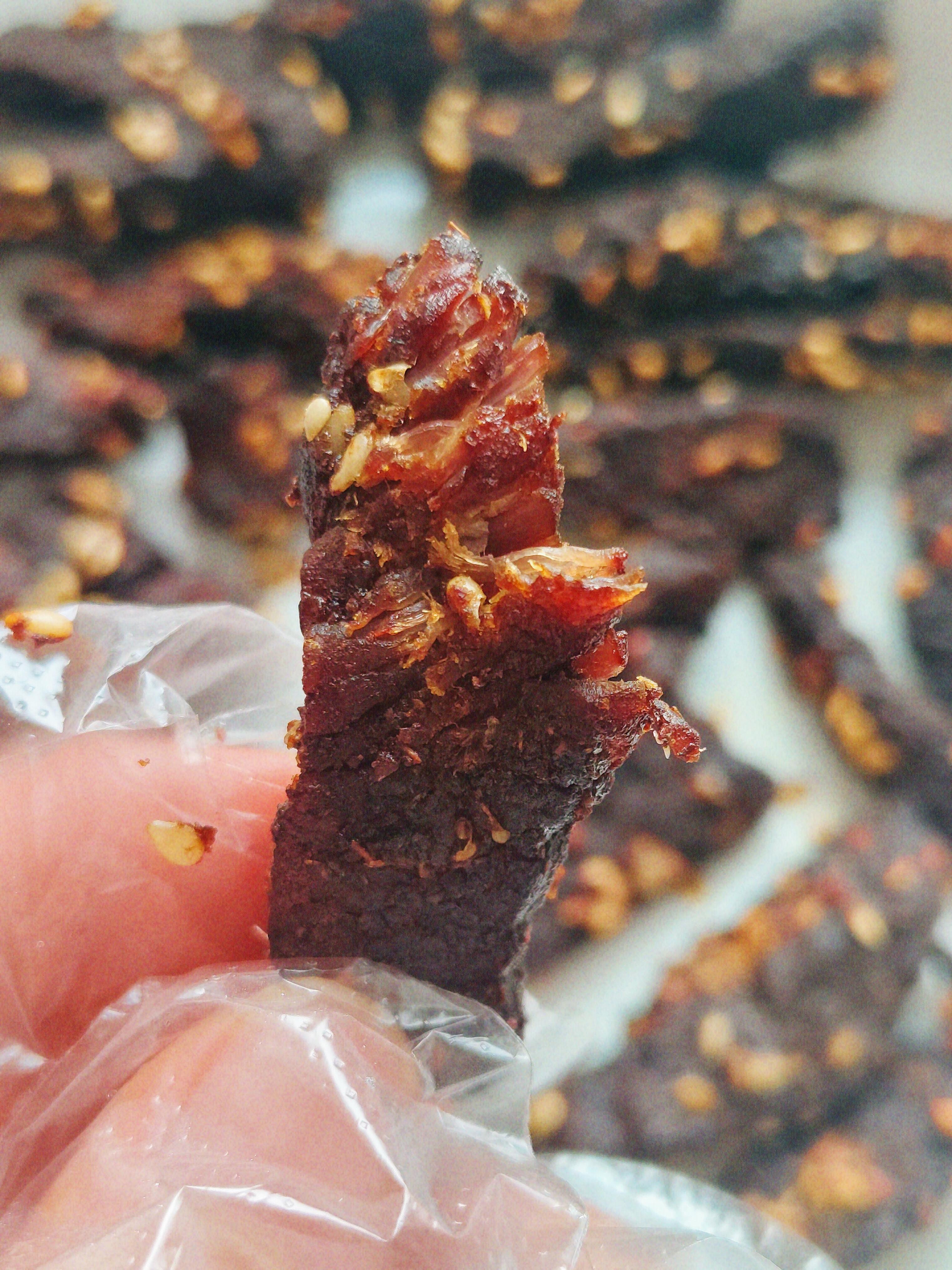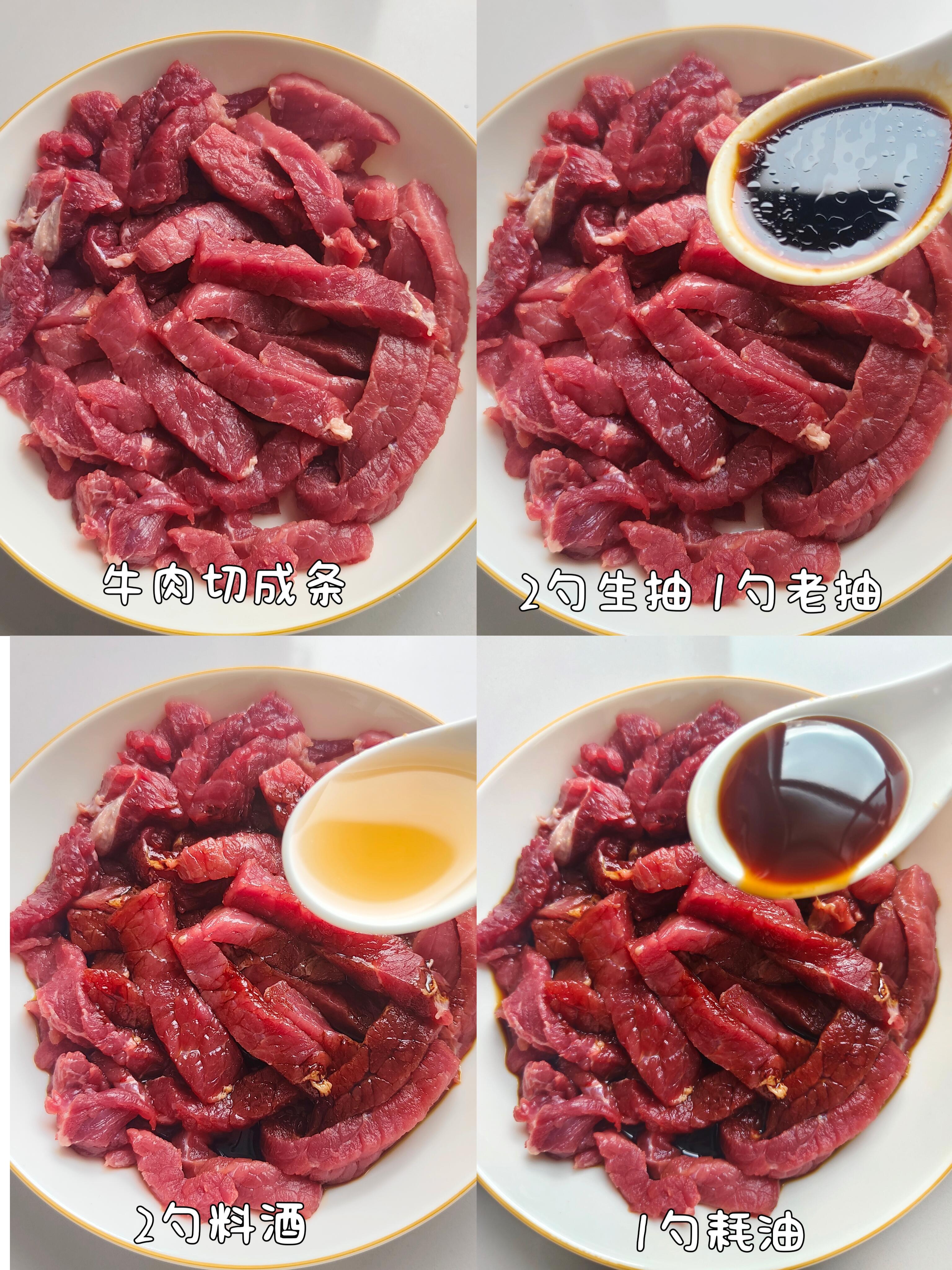 2.自制醃料醃製牛肉條半個小時(2勺生抽+1勺老抽+2勺料酒+1勺蠔油+少許鹽+1勺孜然粉+半勺白糖+一把白芝麻);喜歡喫辣的還可以放點辣椒粉