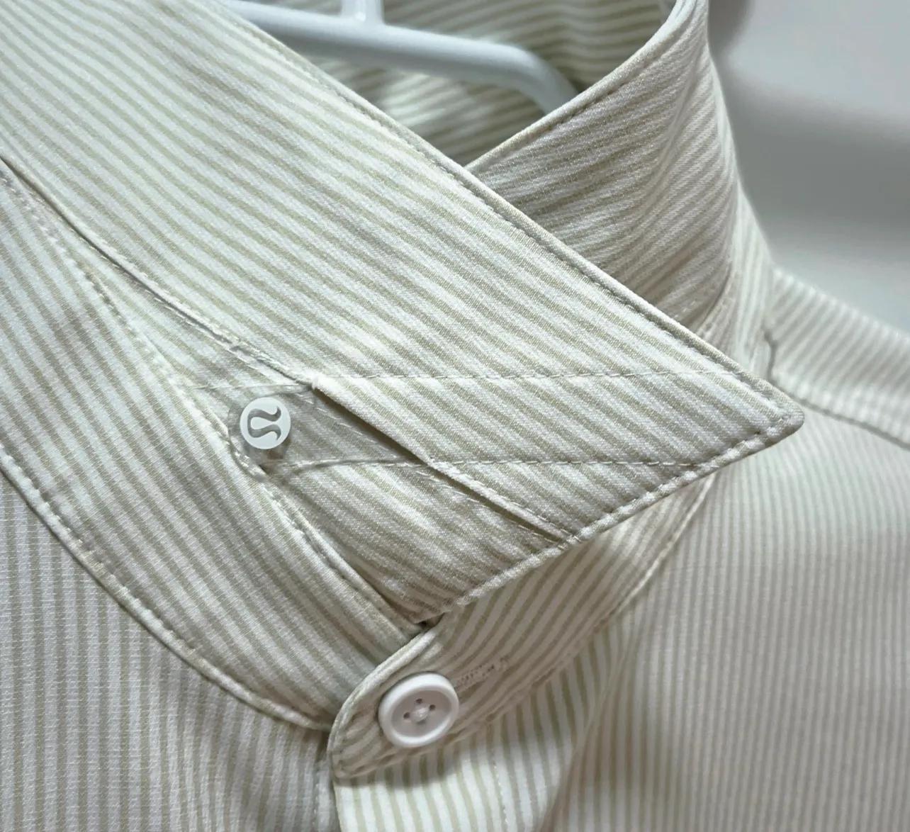 相比之下,lululemon雖然不是做的最好的,但起碼把插片藏在了內側,從外面看,領子依舊利落,只有自己知道,是這點小心機乾的。
