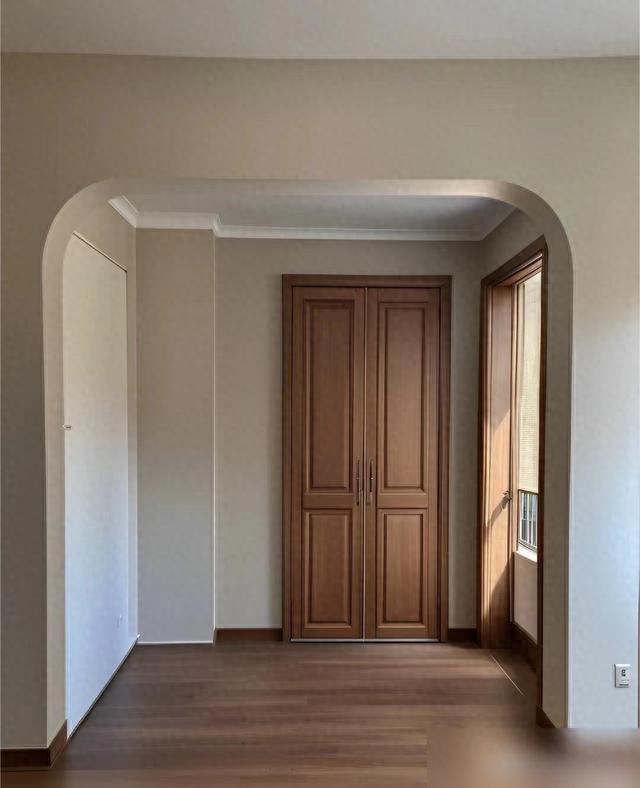 比如他們家的臥室,深棕色地板配同色收納櫃,牆面大白牆,沒有多餘的裝飾,但陽光照進來時,整個房間亮得像撒了金,比那些貼滿壁紙的臥室舒服一百倍!