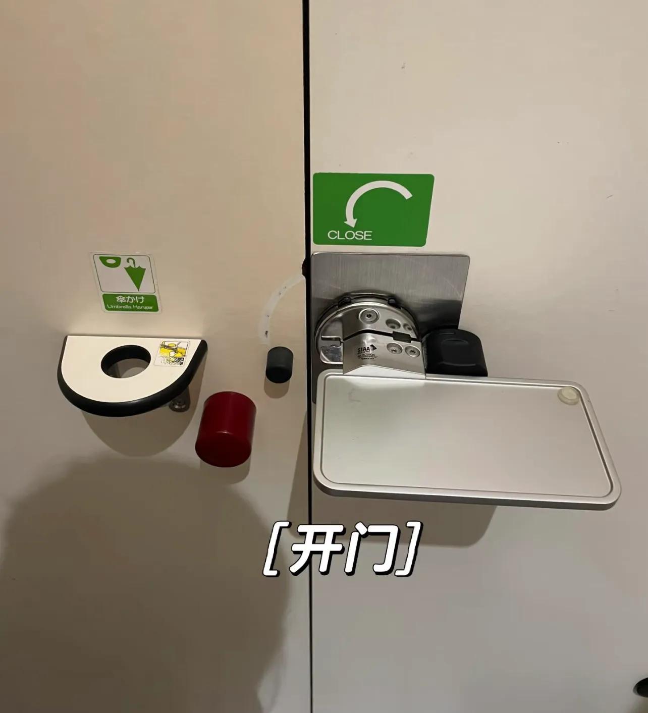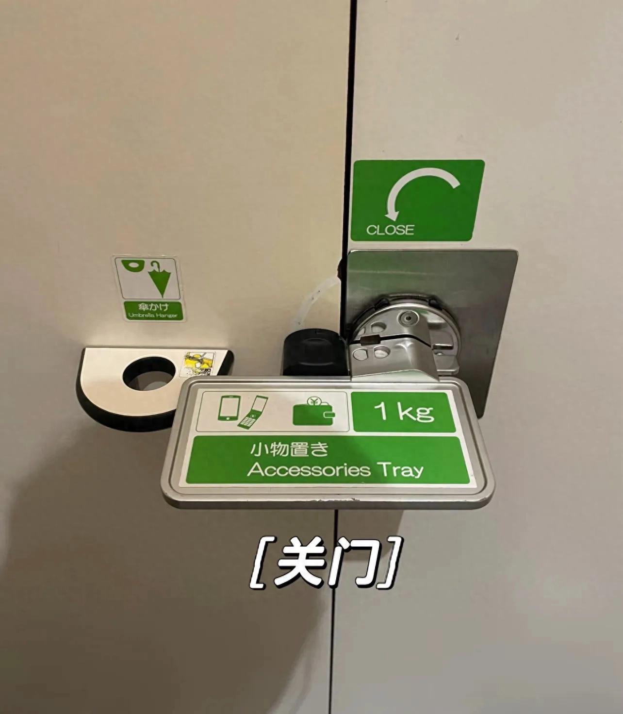 前兩天才埋怨過許多公廁置物架掩耳盜鈴式的手機提示,隔兩天就發現,原來日本的廁所早就解決了這個問題——將置物架設計成門鎖。