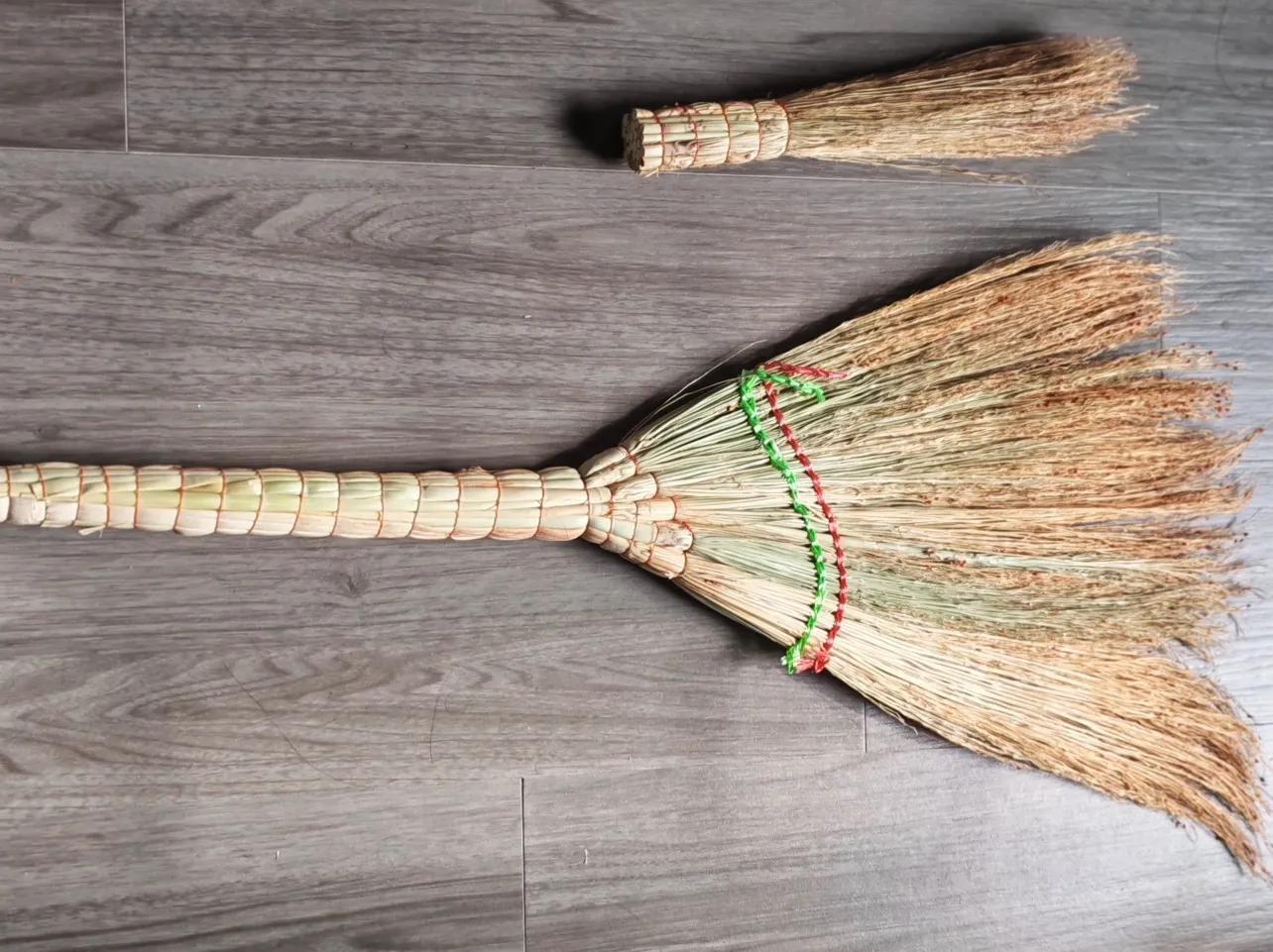 在掃帚還沒這麼多樣的年代,這種天然材料製成的清潔工具,充當着家裏必不可缺的角色。厚實又柔軟的高粱杆被純手工緊箍在一起,握在手裏非常舒適,不容易扎手,也不似現在的塑料杆或鐵桿般冷冰冰。