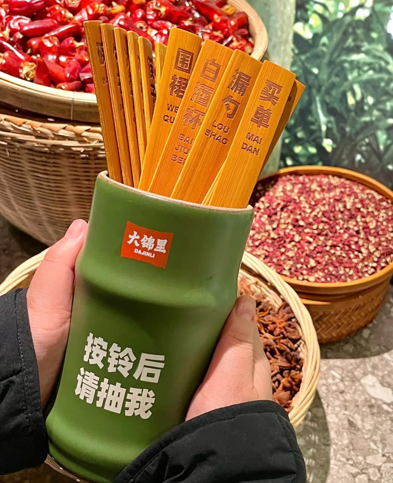 餐桌上的竹籤筒裏也有基礎的服務指示令,如:買單、圍裙、加湯等等,有需要時直接拿竹籤示意工作人員就行。