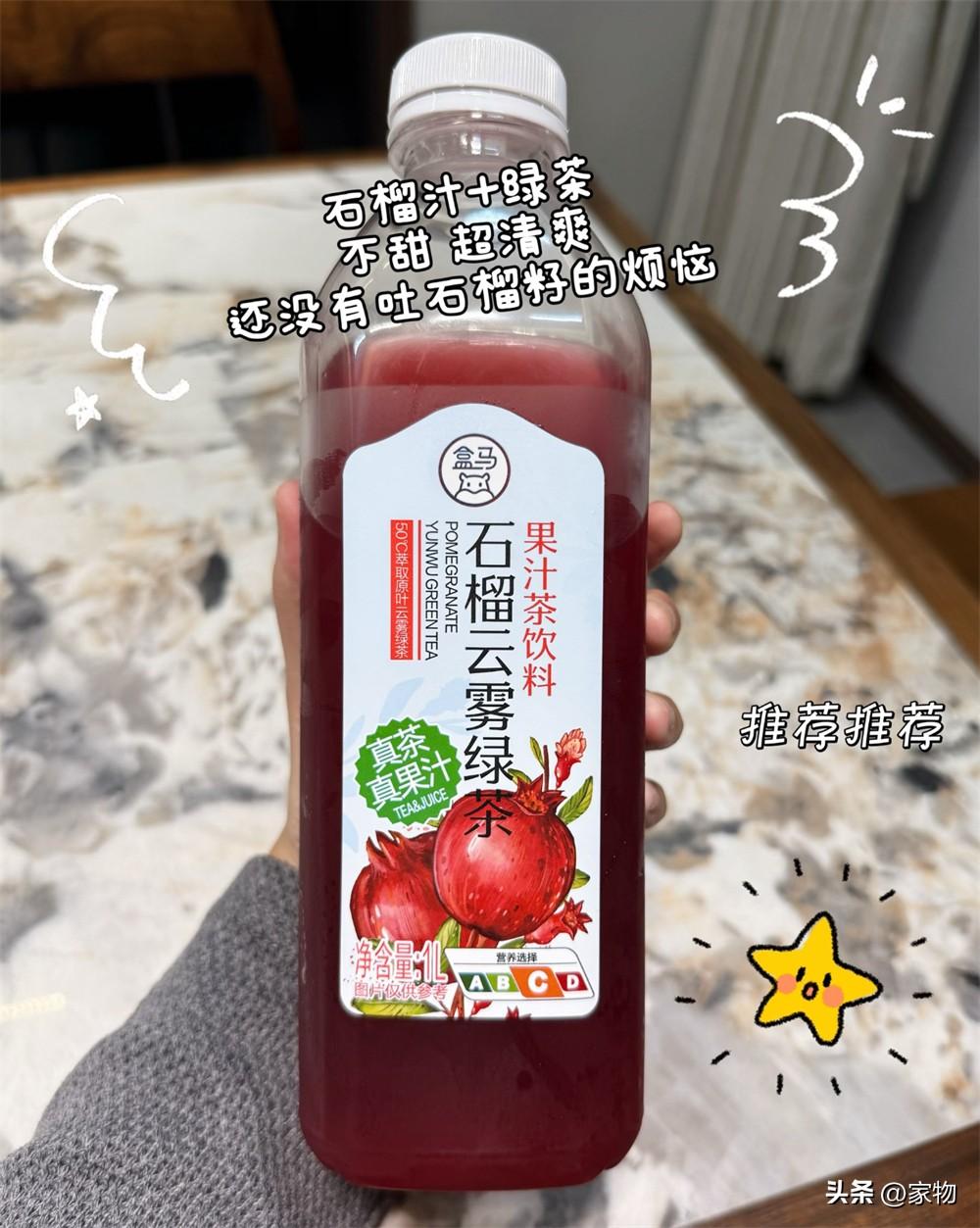 這石榴汁飲料不用我多說了吧,算是盒馬賣爆了的單品,完全不會感到齁甜的同時,還有特別香的石榴果味和回口的茶香,直接衝真的不會後悔,屬於是百喝不厭還解膩的那種,喫大肉的時候我一個人能喝多半瓶。