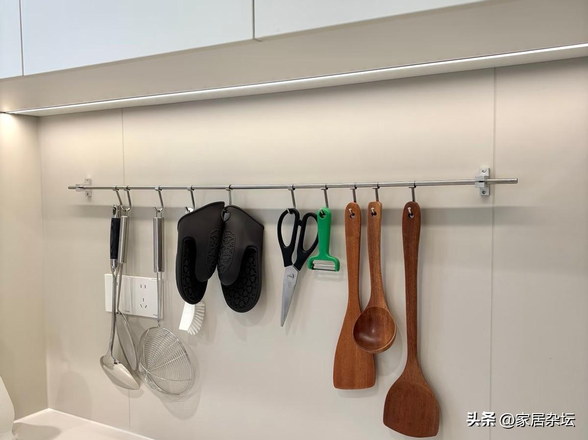 體驗後你會發現,這種牆面掛鉤靈活又多變,可以根據需要隨時調整掛鉤的位置,還有就是數量。很大程度釋放出了地面檯面的空間,讓小物件也有了歸處。