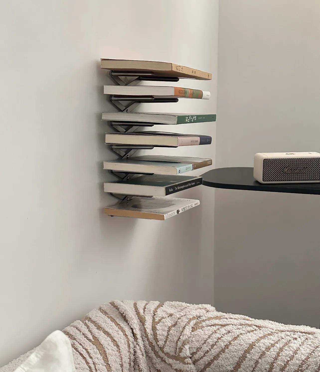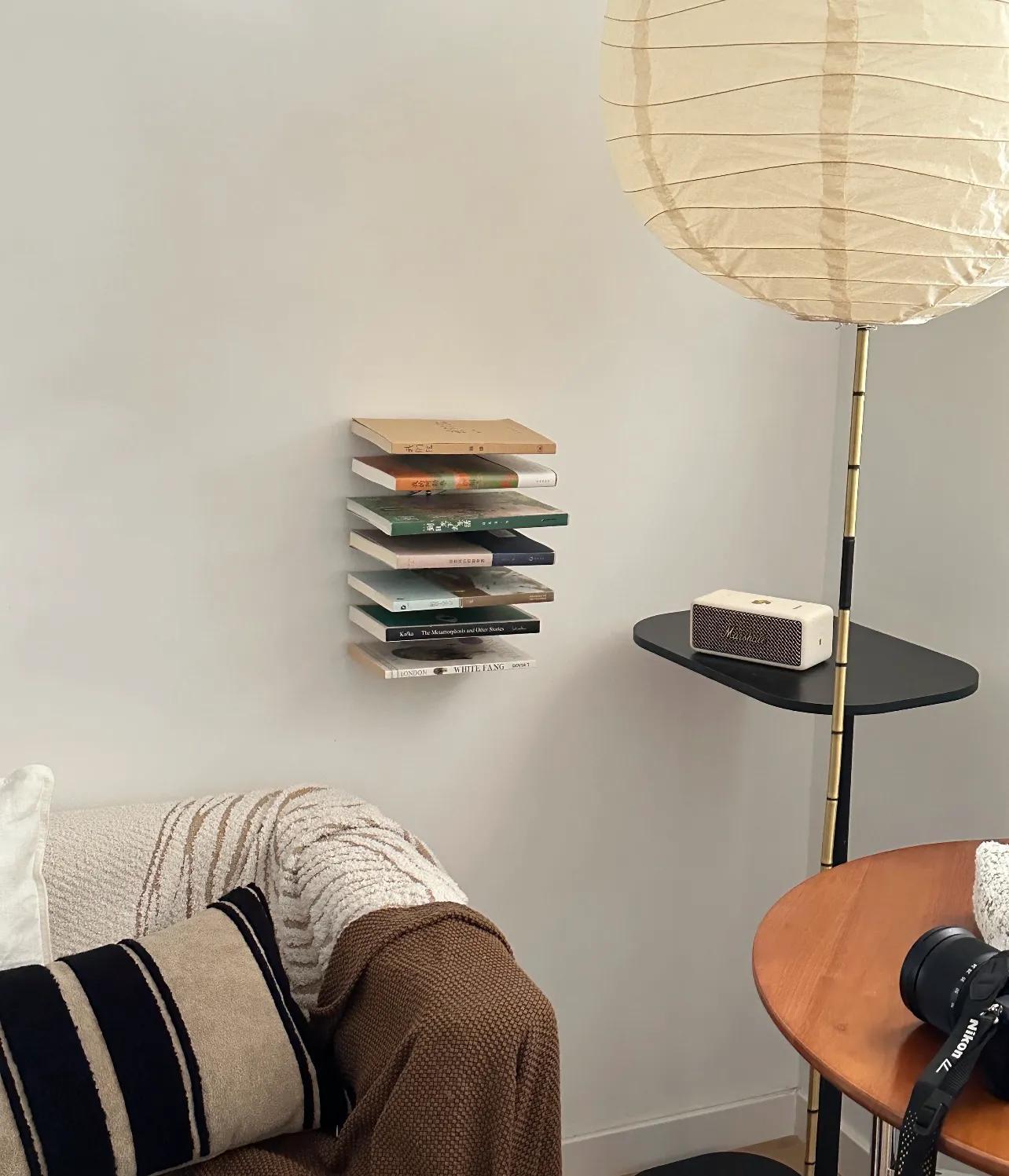 傳統的掛牆書架,要麼太輕,要麼塑料感很重,木質的安裝也很麻煩。