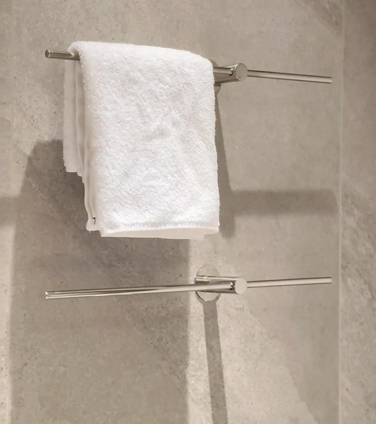 只需將底座黏在浴室牆上,再將杆插入底座的孔洞,安裝就完成了。